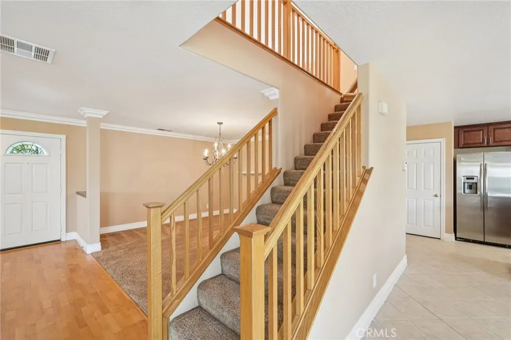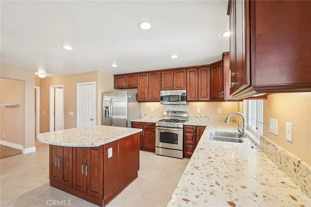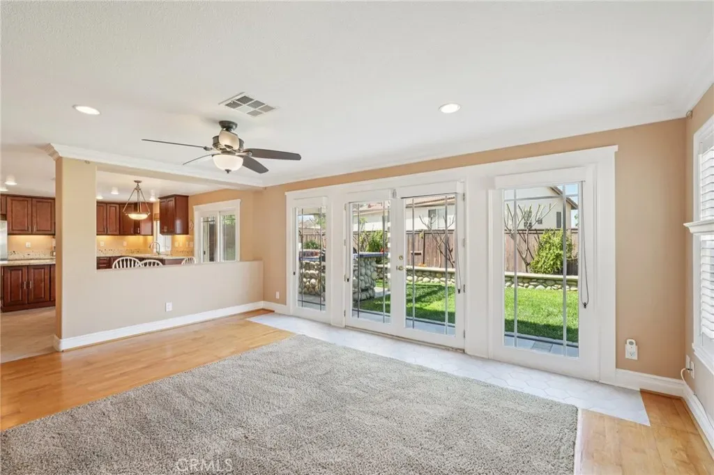 Step into this beautifully upgraded South Corona home, where a spacious and thoughtfully designed floor plan is flooded with natural light throughout. The main level features engineered hardwood flooring across the primary living areas, creating a warm, cohesive, and inviting atmosphere from the moment you walk in. The heart of the home is the upgraded kitchen, showcasing quartz countertops, quality cabinetry, a generous pantry, and an easy flow into the oversized dining area and multiple living spaces, ideal for entertaining or everyday comfort. Upstairs, a large loft separates the bedrooms and offers the perfect flex space for a media room, office, or play area. The primary suite impresses with vaulted ceilings and abundant natural light, along with a fully renovated en-suite featuring a HUGE walk-in shower, soaking tub, dual vanity, and an adjacent walk-in closet. The hall bathroom has also been tastefully renovated for a fresh, modern feel. The backyard is designed for both relaxation and hosting, complete with an outdoor kitchen and a grassy area for play or pets. The home also includes a 2-car garage plus a separate 1-car garage, offering excellent storage or potential for a bedroom, gym, or home office conversion. Located in the heart of South Corona, this home is just minutes from highly rated schools, beautiful parks, top shopping destinations, and offers quick access to both the 15 and 91 freeways for an easy commute to Orange County or anywhere in the Inland Empire. With its natural light, upgraded finishes, and prime location, this home delivers the ideal blend of lifestyle and convenience! Act fast!