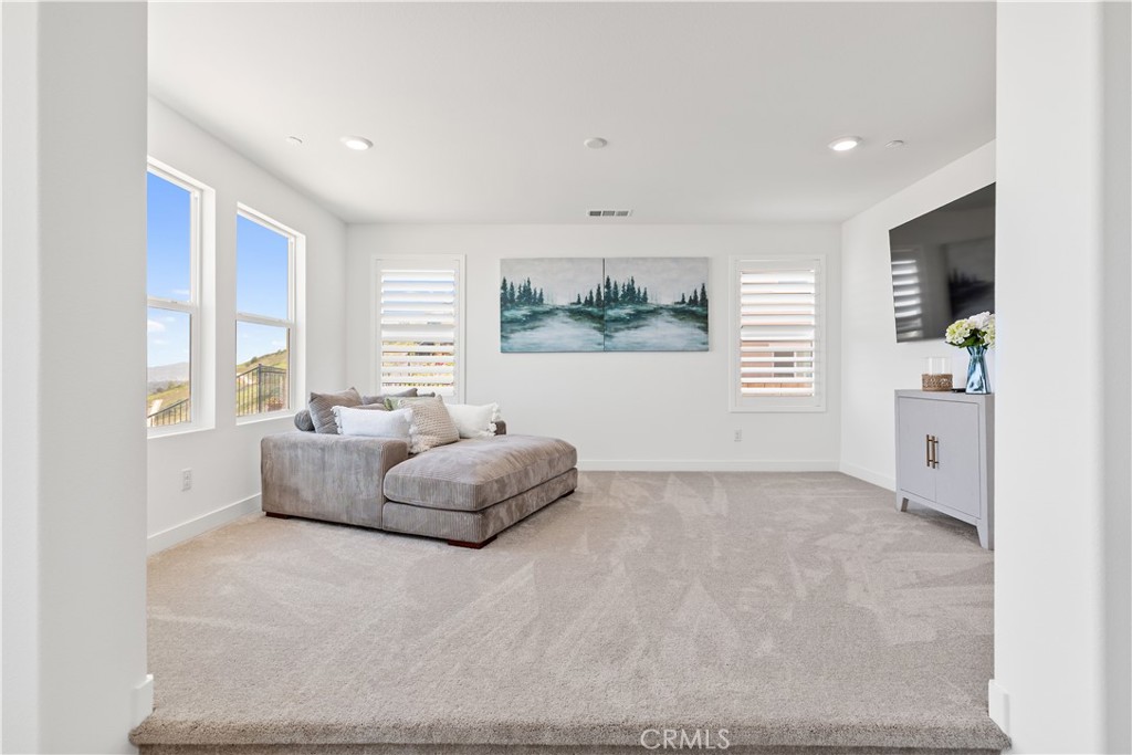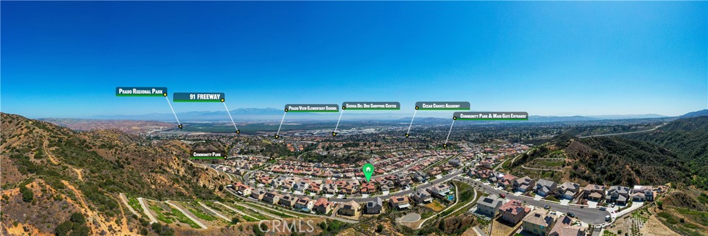 Welcome to your new haven in the prestigious Sierra Bella Community! This breathtaking residence overlooks the picturesque Inland Empire, offers the ultimate blend of luxury, comfort, and convenience. With five generous bedrooms (1 down, addl flex room down, 4 up) and three elegant bathrooms, this stunning 3,912 sq. ft. of thoughtfully designed for both relaxation and modern living. The owner’s suite is a tranquil escape, featuring a cozy sitting area where you can unwind in peace. The gourmet kitchen is a chef’s paradise, outfitted with stainless steel appliances and an expansive pantry to inspire your culinary adventures. A spacious, well-equipped laundry room adds ease to your daily routine, while a versatile flex room can serve as a home office, gym, playroom, or even a sixth bedroom, perfectly adapting to your lifestyle. The open-concept living area, drenched in natural light, creates an inviting space perfect for cherished family moments and lively entertaining, where laughter and warmth fill the air. Breathtaking mountain and city views grace every corner of the home, bringing the beauty of nature inside. Equipped with smart home technology, including smart appliances, a thermostat, USB outlets throughout, blending convenience with security. The three-car garage offers ample space for your vehicles topping it off with EV charging station. Energy efficiency is at the forefront, with a fully paid off solar system, promoting a sustainable lifestyle. With a lot size of 8,712 square feet, there’s plenty of room to add a pool and spa. The backyard is a canvas for your imagination, ready to transform to become your personal sanctuary. Conveniently situated near major freeways with easy access at Green River and Serfas Club, this home is just minutes from Orange County. The community features two parks and nearby hiking trails, offering a perfect blend of adventure and tranquility thoughtfully crafted for your lifestyle. From breathtaking views and spacious living areas in a gated community, this is more than just a house—it’s a place where cherished memories will unfold. Don’t miss the opportunity to make it yours and embrace the lifestyle you’ve always dreamed of!