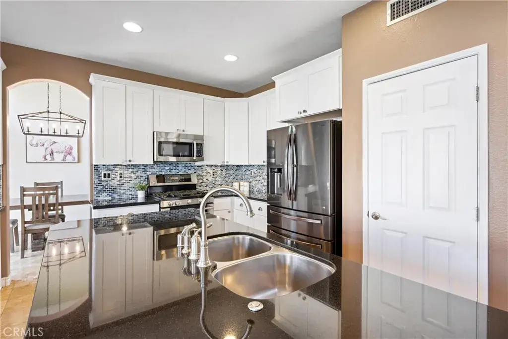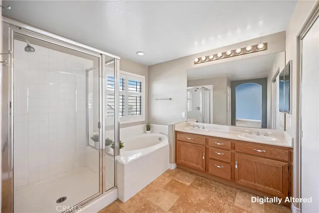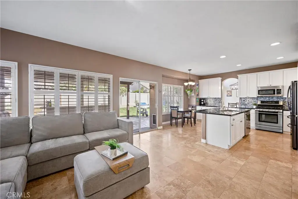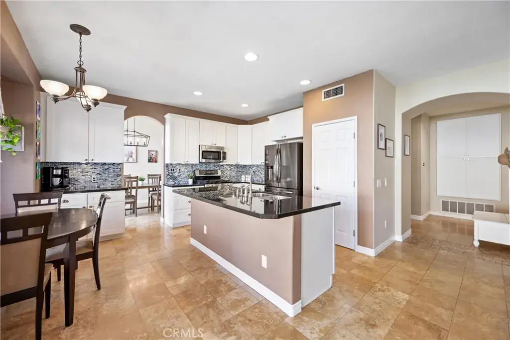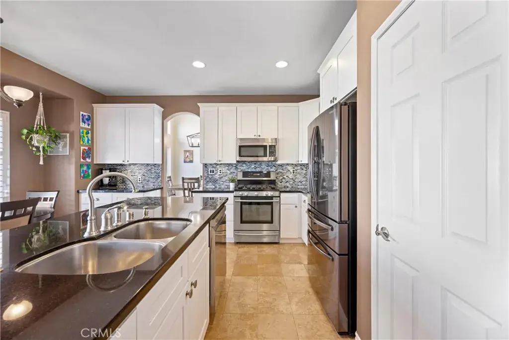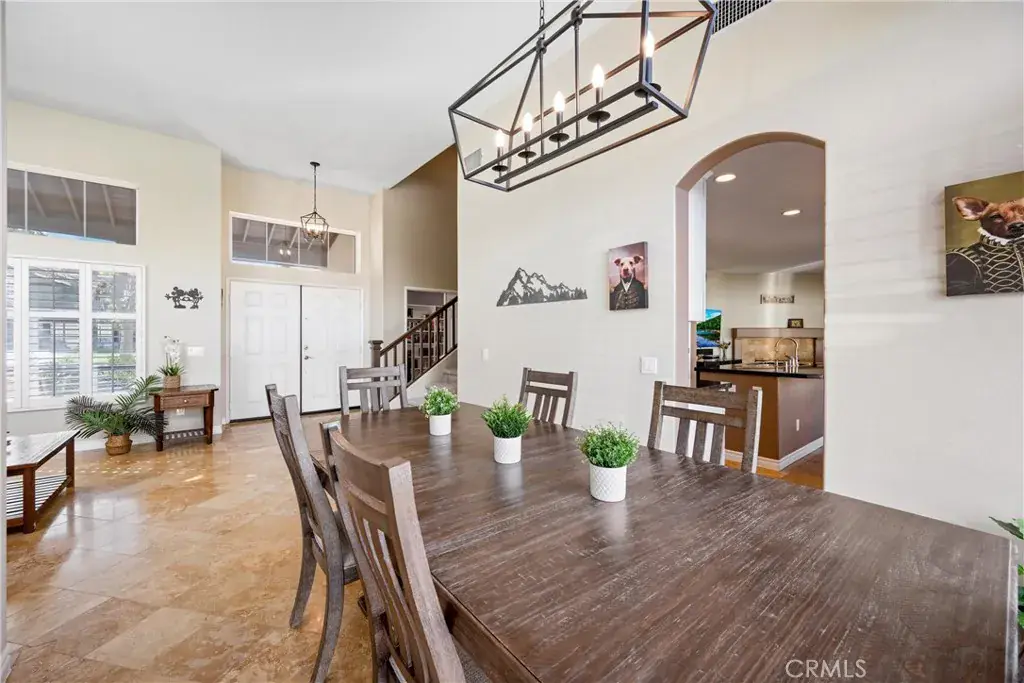 5 BEDS + LOFT | DOWNSTAIRS BED + BATH | 3-CAR GARAGE | RV / BOAT PARKING | FULLY PAID SOLAR | NO HOA | LOW TAXES | This beautiful home in the heart of Corona offers space, style, and exceptional upgrades throughout. Step through the impressive double-door entry and you’re immediately greeted by abundant natural light, soaring cathedral ceilings, and upgraded tile flooring that creates a warm yet elegant first impression. The Living Room flows seamlessly into the formal Dining Room, making entertaining effortless. The heart of the home is truly a chef’s dream Kitchen, showcasing a walk-in pantry, oversized island with breakfast bar seating, white shaker cabinetry, granite countertops, custom tile backsplash, and a charming coffee bar. Adjacent to the Kitchen, the inviting Family Room features a gas fireplace and an over-sized sliding door to the backyard, blending indoor and outdoor living with ease. The well-sized Primary Suite is washed with natural light and has a spa-inspired Ensuite Bathroom complete with a walk-in shower, deep soaking tub, and dual sinks. Bedrooms #2 – #4 are generously sized and ideal for family or guests. Bathroom #2 upstairs includes dual sinks, a shower/tub combination, and a privacy door. An oversized Loft provides the perfect space for a media room, playroom, or home office. Downstairs, a Bedroom and full Bathroom with tub and walk-in shower offer excellent multi-generational living potential. Convenience continues with an oversized Laundry Room featuring a folding station and ample storage. The Backyard is an entertainer’s dream with a large patio, over-sized patio cover with overhead heaters and fan, bar-top seating with meal prep area (perfect for BBQs) – all made for entertaining! The backyard also includes raised planters, fruit trees, vinyl fencing, and scenic mountain views. The 3-car garage boasts epoxy flooring, and you’ll find four additional driveway spaces and tons of parking space for boat or RV! UPGRADES: Exterior paint (2025), new AC and furnace (2021), and new upstairs carpet (2022). ENERGY EFFECIENCY: Fully paid solar system with two batteries, whole house fan, ceiling fans, plantation shutters, LED lighting and 220-volt power in the garage. LOCATION : Enjoy nearby parks, shopping, dining, and convenient access to the 91, 15 and 241 freeways. This exceptional Corona home truly has it all!