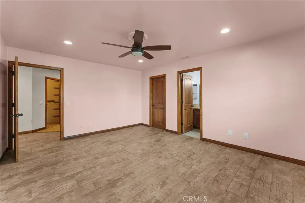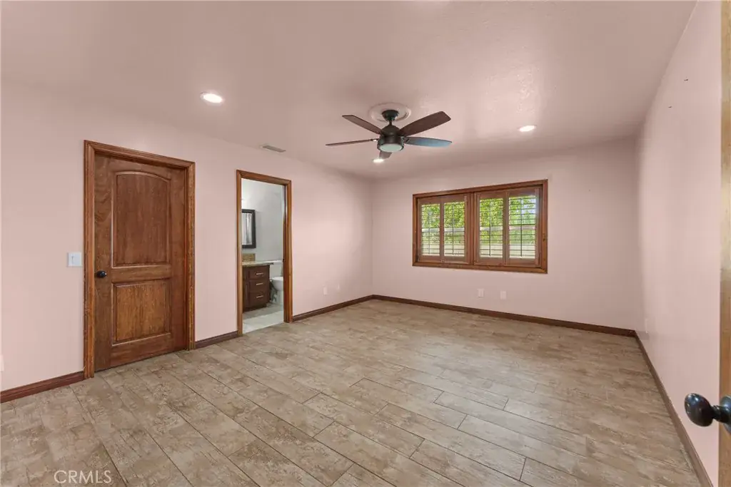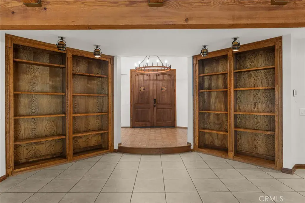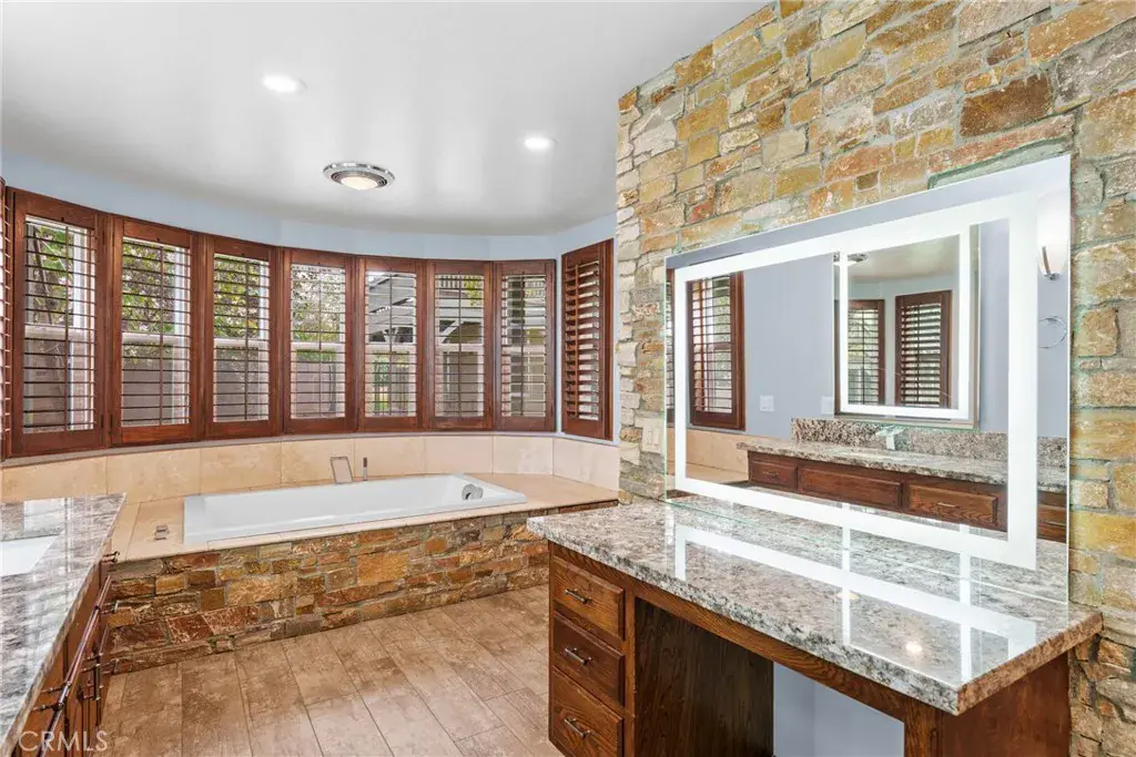 Meticulous landscaping enhances the home’s curb appeal, framing the stately exterior. Inside the single-story main residence, an open floor plan unfolds beneath recessed lighting and rich woodwork. Impressive double doors welcome guests into a dramatic rotunda foyer, from which the living area and dining alcove connect. Vaulted wooden ceilings crown the great room, where custom shelving and a striking brick fireplace establish warmth and character. Serving as a culinary hub, the entertainer’s kitchen displays a central prep island, stainless steel appliances, abundant cabinetry, and a breakfast counter flanked by a wet bar and large wine rack , ready for gatherings of all sizes and types. The comfortable retreats accommodated by ample closets and sleek, contemporary baths, are all generously sized. Your primary suite is a soothing sanctuary with an ensuite featuring a soaking tub, dual sinks, an integrated vanity, and an oversized shower.