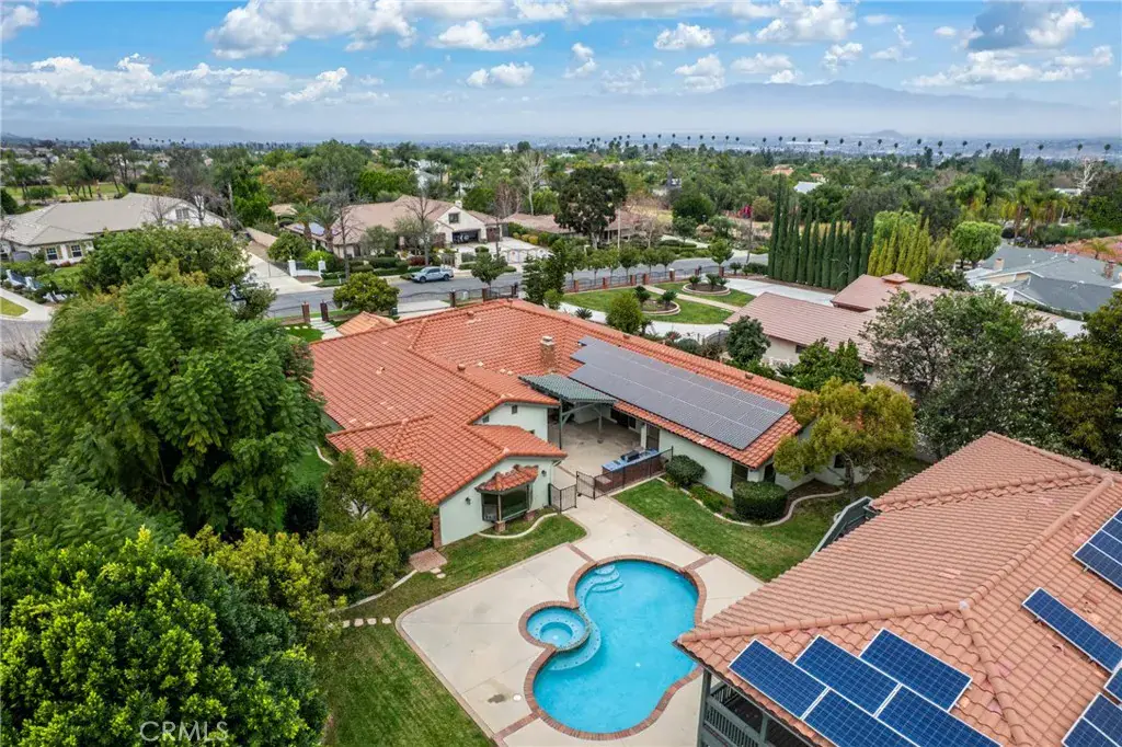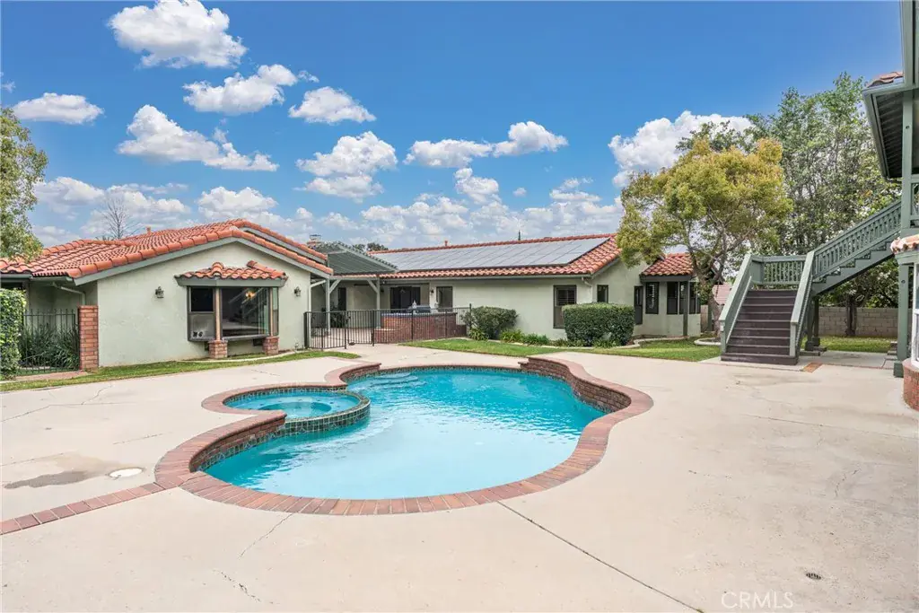 Outdoors, a trellis-covered patio with a built-in grill sets the stage for weekend BBQs, while a pool and spa anchor the fenced courtyard between the front dwelling and the two-story guest house that consists of 1800+ sq. ft., a kitchenette, and several private balconies. Resting on 0.79 acres, it also includes solar panels, secondary driveway access to RV parking, an attached 4-car garage, and open land for versatility. Conveniently close to schools, shopping, parks, and I-15, find everything within easy reach as you imagine starting a new chapter here!