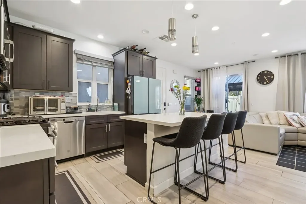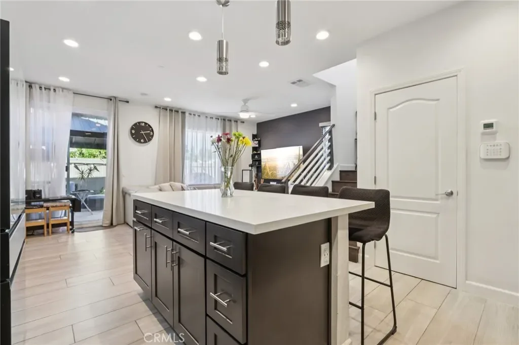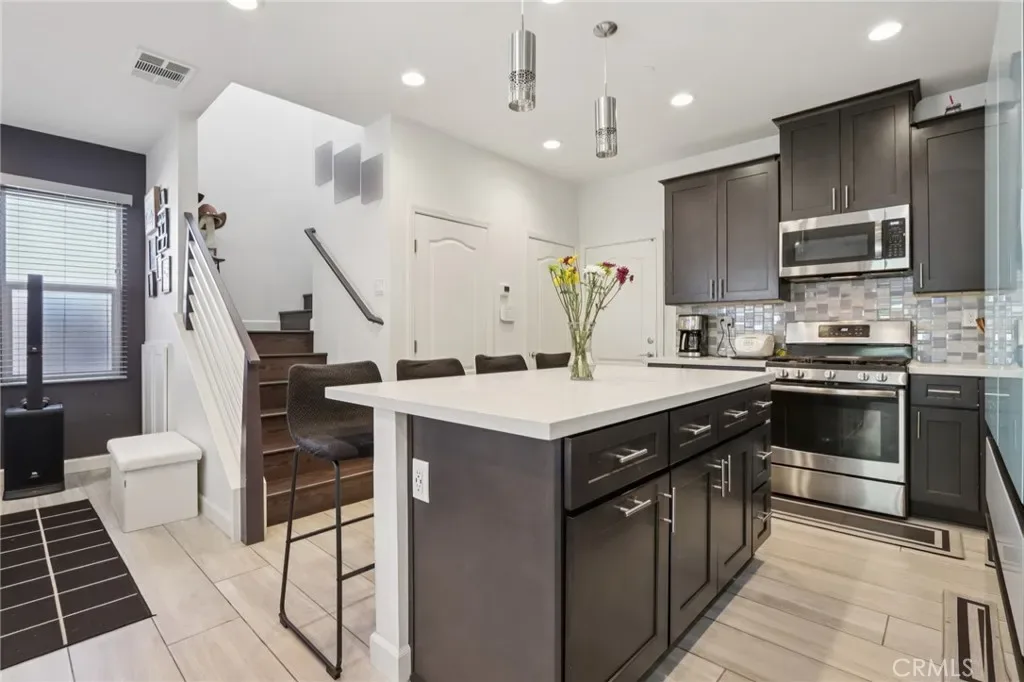 Welcome to this beautifully upgraded smart-home condo offering modern design and comfortable living in beautiful Corona. The open concept floor plan features stylish tile flooring, custom cabinetry, upgraded countertops, water filtration system and elegant wood stairs that create a warm and contemporary feel throughout. The spacious kitchen includes a large center island with seating, stainless steel appliances, and plenty of storage making it perfect for both everyday living and entertaining. Smart home features such as Ring security cameras and MyQ garage system providing added convenience and peace of mind. Upstairs you’ll find generously sized bedrooms, two bathrooms, and a convenient upstairs laundry area. Step outside to a private backyard designed for relaxation and entertaining, complete with pavers, artificial turf, and a covered gazebo lounge area. Residents enjoy community amenities including a pool, spa, and picnic areas. Ideally located near shopping, dining, parks, schools, and major freeways including the 91 and 15. This home offers both comfort and convenience in the heart of Corona.
