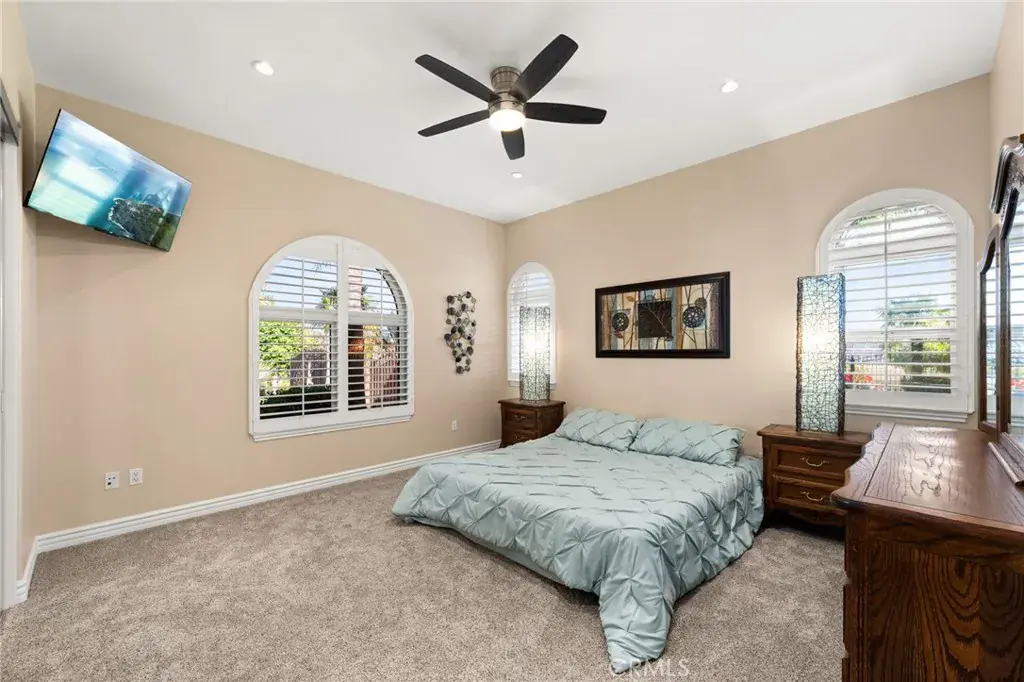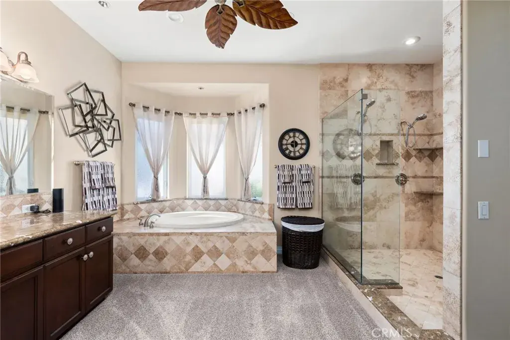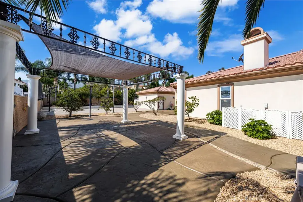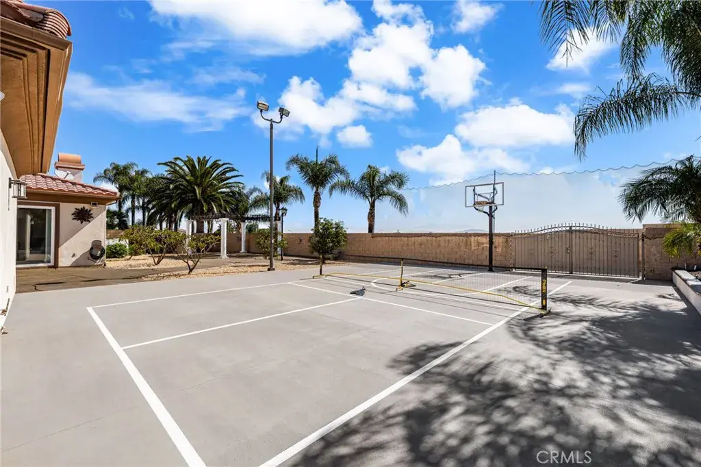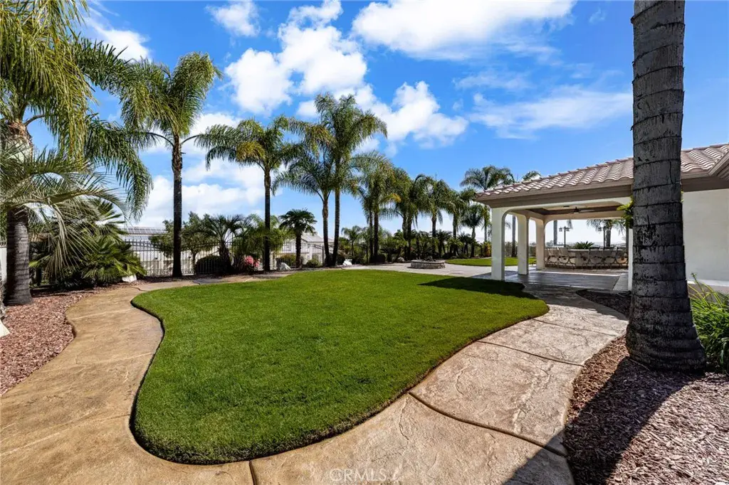 Welcome to the Beautifully Designed, Custom-Built 4,533 Square Foot Single-Story Home Located in a Small Cul-De-Sac in Desirable South Corona. Situated on an Expansive 40,000+ Square Foot Lot with NO HOA, this Property Offers Privacy, Space and Incredible Amenities. The Home’s Standout Architectural Feature is the Striking Circular Formal Dining Area. There are 4 Spacious Bedrooms, Each with its Own Ensuite Bathroom, Plus a Convenient Half Bath off the Dining Area and a Spacious Office/Workout Room. The Luxurious Primary Suite Features an Oversized Walk-In Closet, and a Spa-Inspired Bathroom with Dual Sinks, a Vanity Area, a Soaking Tub and a Large Walk-In Shower. The Open-Concept Kitchen Flows into the Inviting Family room, Complete with a Gas Fireplace, High Hearth Mantle and Two Ceiling Fans. The Chef’s Kitchen is Equipped with a Grand Walk-In Pantry, Stainless Steel KitchenAid Appliances -including a Built-In Refrigerator, Oven with 6 Burner Cooktop, a Single Oven, Microwave, Trash Compactor and Dishwasher. The Large Center Island has a Vast Amount of Storage and a Eating Area and Access to the Backyard. The Spacious Indoor Laundry Room Offer Ample Cabinets, a Utility Sink, Generous Counter Space and Direct Access to the Garage. Just off the Dining Area is the Game Room Featuring Custom Resin Countertops, Cabinets for Storage, Color-Changing Lighting, Bar Sink, Small Refrigerator, Built-In Media Cabinet, and a Sliding Door to the Outside Barbecue Area. Designed for Entertaining, the Backyard Includes Two Large Covered Patios, a Gas Fire Pit, Barbecue Island with Bar Seating, Sink, Mini Refrigerator, and Storage. There is a Sun Shade Area that is Great for Outdoor Seating or a Above Ground Spa. The Large Grass Area is Prepped for a Future Pool or Playground Area. Fruit Trees Include: 2 Dwarf Apples, Meyer Lemon, 2 Oranges, Tangerine, Avocado, Asian Pear, Nectarine and Lemon. Additional Amenities Include: Plantation Shutters Throughout Home, Mirrored Bedroom Closet Doors, Travertine Flooring, Carpet in Bedrooms and Family Room, Tinted Front Windows, Drought-Tolerant Landscaping, Rain Gutters, and Outdoor Motion Lights. The Property has a 2 Car Garage Plus a 4 Car Tandem Garage with Epoxy Floors, High Ceilings, Built-In Cabinets, RV Parking, Water Softener, and Hot Water Recirculation System. NO HOA, Low Taxes and Close to Award Winning Schools and Shopping. Truly a Remarkable Residence Where Detail and Design Come Together in Perfect Harmony.