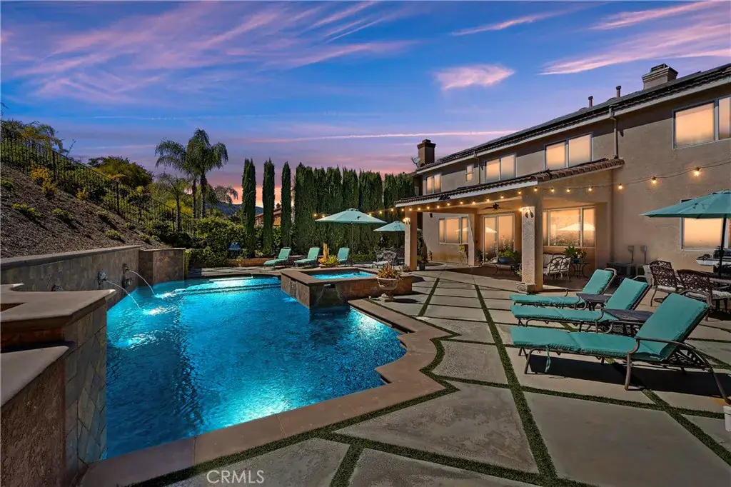 Beautiful Eagle Glen Home with Mediterranean Pool!! Desirable Floor Plan with 3,446 Sq/Ft, 4 Bedrooms, 4 baths, Plus Huge Bonus Room, Office & Solar Powered!!. Highly Upgraded, Island Kitchen Features Stainless Steel Appliances, Jen-Air Stove, Breakfast Bar, Stained Maple Cabinets, DCS Dishwasher, Granite Counters,Travertine Back Splash, Built-In Desk,Recessed Lighting & Wood Beamed Ceiling. “Virginia Vintage Baseboards”, Fireplace Mantel. Spacious Family Room w/ Entertainment Niche, Office off Family Room, Wood Plank Floors Throughout Upstairs, Wrought Iron Staircase, Formal Living & Dinning Rooms, Walk-In Closet in Master Bedroom, Frame less Shower, Granite Counters in Master Bath,Huge Bonus Room with Gorgeous Tin Ceiling & Beautiful Wood Wet Bar, Whole House Fan, Ceiling Fans , New Pex plumbing throughout, Salt Water Swimming Pool & Spa with Reef Step & Solar Heating. Stucco Patio Cover with Tile Roof & Ceiling Fan, Diamond Cut Concrete with Artificial Grass Inserts, Charming Courtyard with Huge Fountain & Paver Entry, Custom Wood Front Door, Solar Attic Fans, Block Walls, 9583 Sq/Ft Lot, Built by Lennar Homes in 2000 and Walking Distance to Golf Course, Wilson Elementary School, Park and Grocery Store. Low Taxes, Low HOA!! Great Home For Entertaining, Your Clients Will Love It!