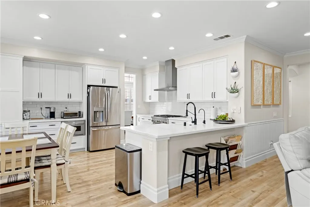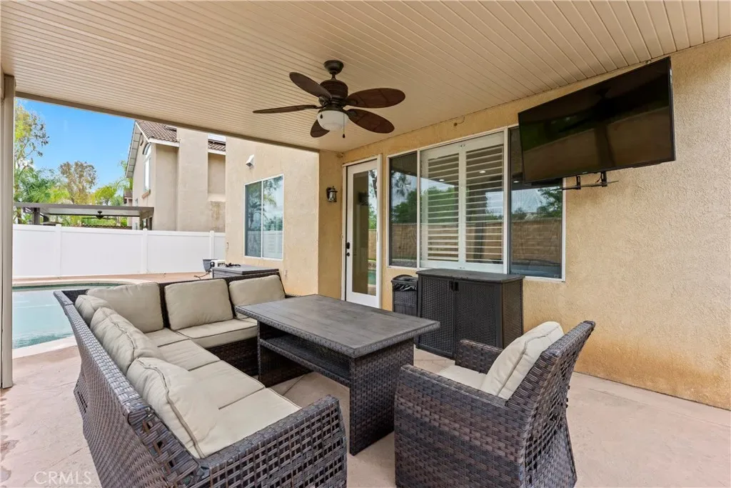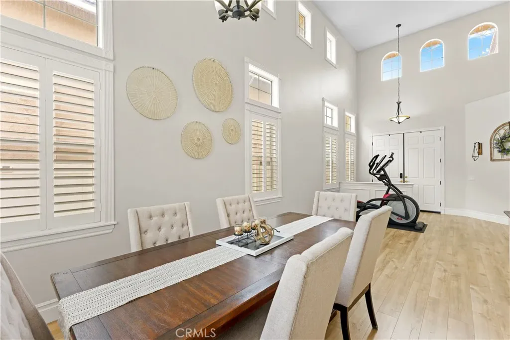 Welcome to 4370 Leonard Way, a home where modern elegance meets everyday comfort. A beautifully upgraded 4-bedroom, 3-bath residence designed to impress from the moment you walk in. Step inside and you’re greeted by soaring ceilings, abundant natural light, and rich wood flooring that flows seamlessly throughout the main living areas. The grand staircase and open layout create an immediate sense of space & sophistication. At the heart of the home is a stunning, fully upgraded chef’s kitchen which blends style and function. Featuring crisp white shaker cabinetry, quartz countertops, a farmhouse sink, subway tile backsplash, and Thermadore appliances. The kitchen opens effortlessly into the spacious family room featuring a cozy fireplace. All bathrooms have been meticulously upgraded for style and function. There is one bedroom and a bathroom downstairs. The backyard is the perfect place to relax in the spa after a long day or in the pool on those hot summer days. The patio cover helps keep the house cooler, along with the new air conditioners, plantation shutters throughout, and a whole-house fan, not to mention solar! All of this is located in the beautiful Eagle Glen community!