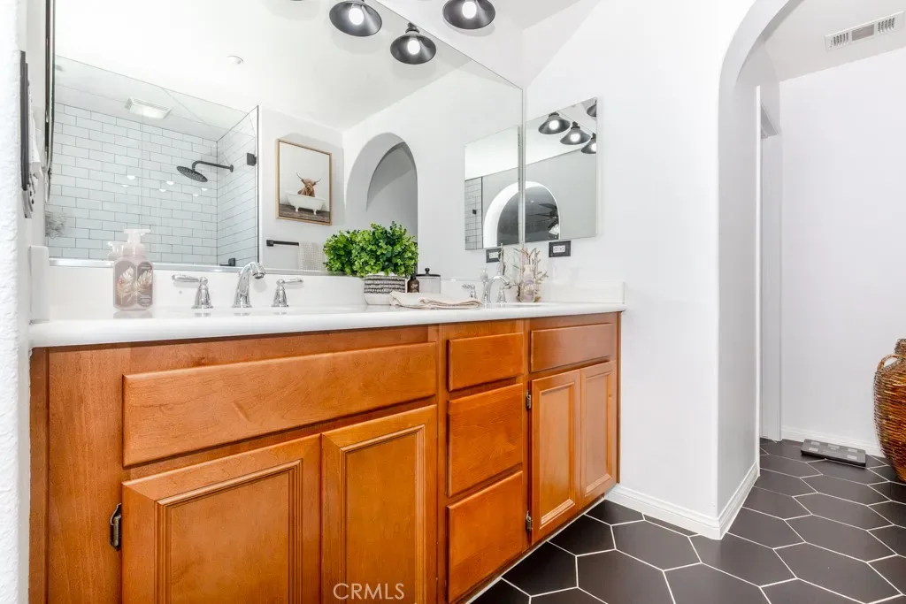 A Resort Style Community, with a Modern Designed unit and a ideal living location that is within walking distance to the mountain rimmed Dos Lagos Golf Course and Unique Eateries and Shops!! Tastefully updated within the last 2 years. Modern quartz counters, and stainless steel appliances bring the kitchen together nicely. Daylight lighting throughout the home radiates with its fresh clean white interior paint. Oversized windows illuminate with ideal natural lighting. Bedrooms are generous in size. The primary shower room is set for your own personal spa day! Beautifully Designed interior Arched Walkways really sets the style in this home. This Home has been very loved, and shows clean, crisp and sharp! ALL light switch covers, outlet covers and interior door handles are all finished in matt black and are definitely stylish! Excellent views to the shops across the street from the primary bedroom. The community is gated and the community pool is set up like a mini resort. Come see it all…