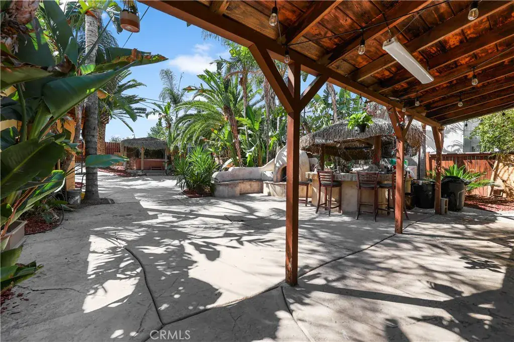 You will be captivated by the outdoor living space, truly an entertainer’s paradise. It features resort-style palms, meticulously maintained landscaping, a newly cemented area, and a deck with a private jacuzzi. Imagine gathering friends and family for drinks at the tiki bar or relaxing around the firepit. The location is ideal, offering private access to Husted Park directly from your gate.