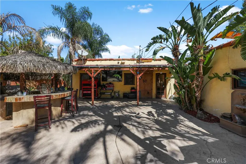 The interior boasts a charming Spanish style, a modified open-concept layout, and elegant wood-framed arches throughout. The kitchen has been beautifully updated with modern upgrades, granite countertops, newer cabinets, and appliances. Additional home features include upgraded copper plumbing, a new sewer line, tankless water heaters, and air conditioning.
