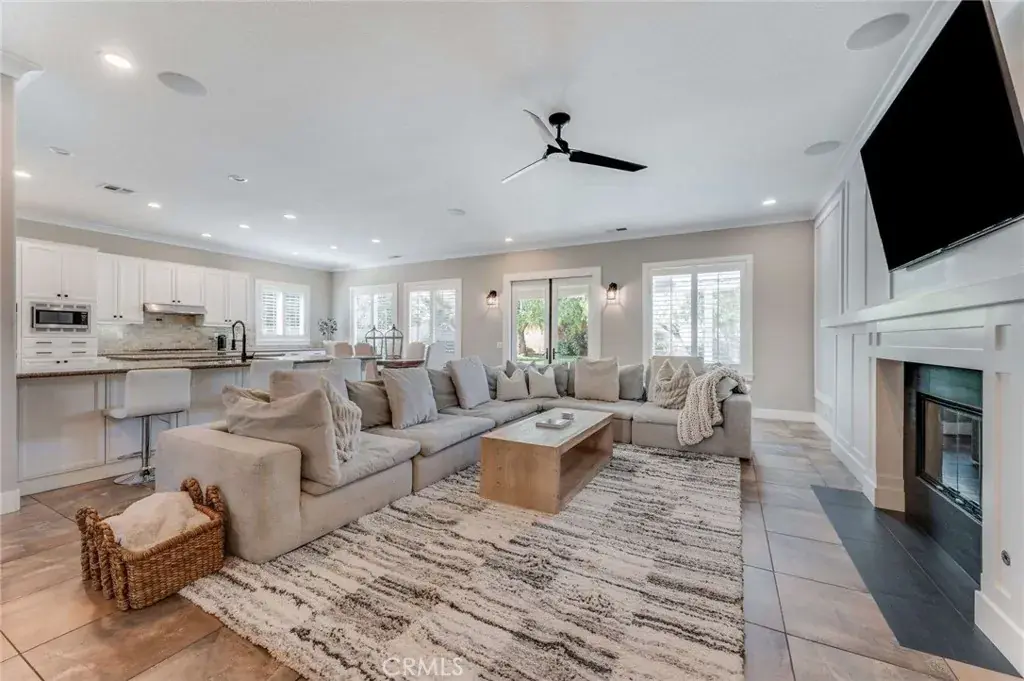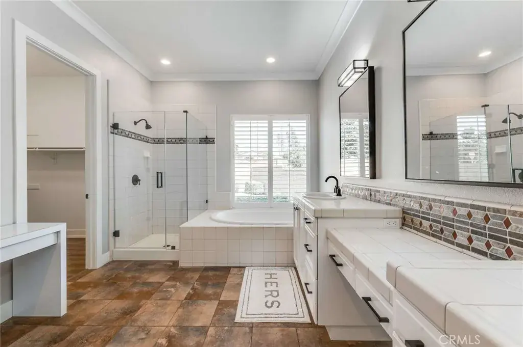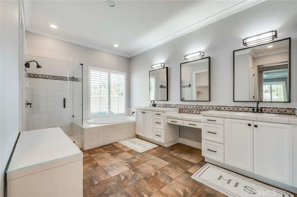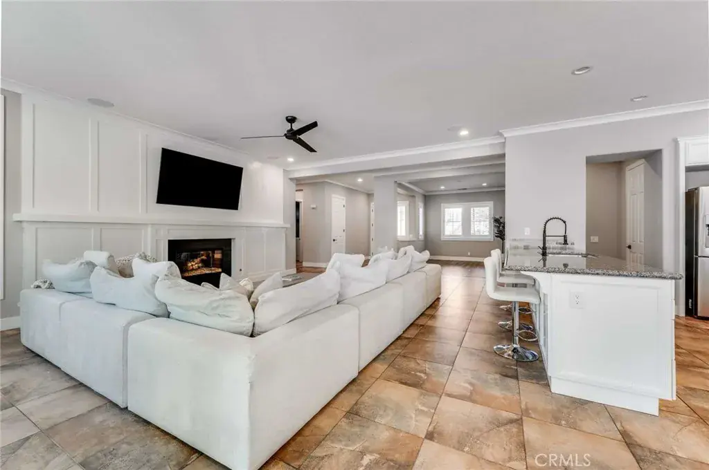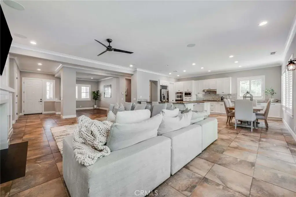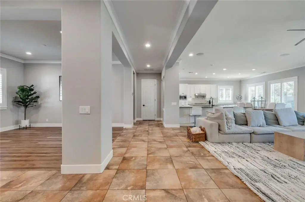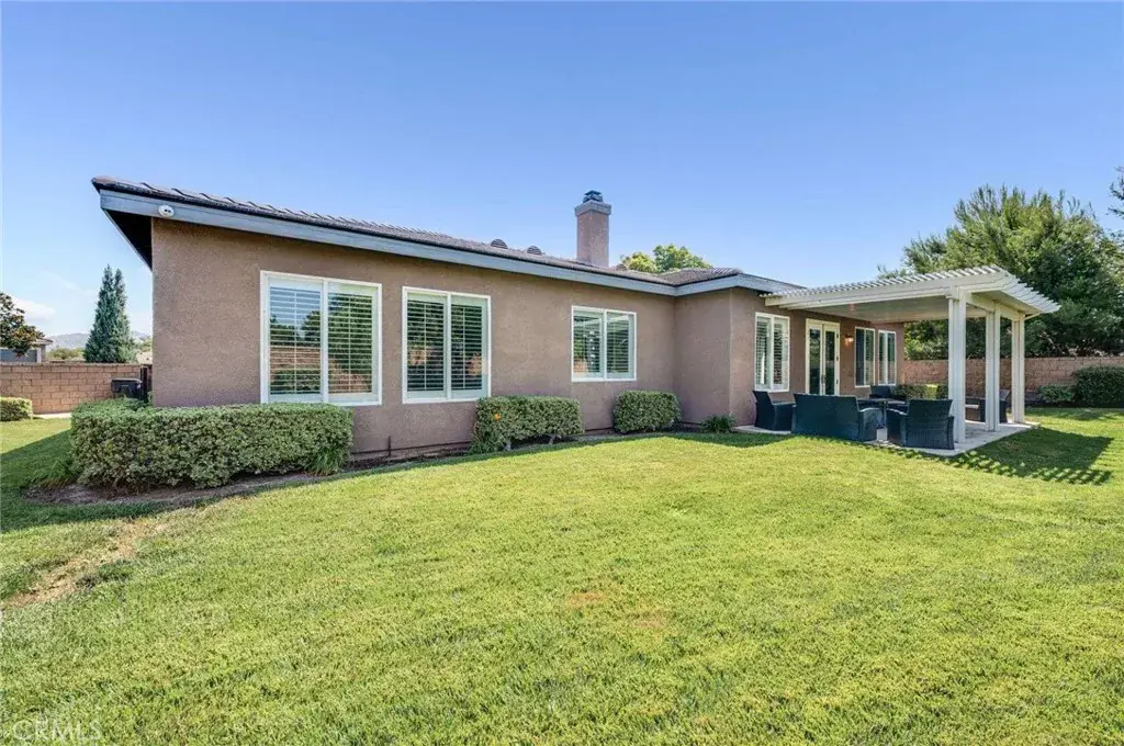 Beautifully Updated 3 Bedroom, 2.5 bath, 2965 sq ft single story on over 1/3 of an acre corner lot tucked away in a very private area of Corona. Walking into the home it opens up to a large family room / kitchen with custom millwork, custom built in surround sound also includes TV, security system, camera system and shutters. Huge open kitchen, stainless steel appliances, large peninsula, Island and granite countertops perfect for entertaining. Off to the right side of the home is a huge primary suite boosting custom millwork with coffered ceilings, crown moulding, oversized base, shutters also includes a TV. Primary has large his/her walking closets plus a separate shower / tub and dual sink vanity. There is also access to an adjoining room through a hidden pocket door off the primary bedroom currently being used as a nursery which also features custom millwork, shutters & barn door. This room can be utilized in so many ways, possible extension of the primary or future 4 bedroom. The balance of the bedrooms and bathroom are on the opposite side of the home which has the same upgraded millwork finish as the rest of the home. Large three car attached garage with access thru the laundry room just past the main 1/2 bath. This is a must see!!!!.