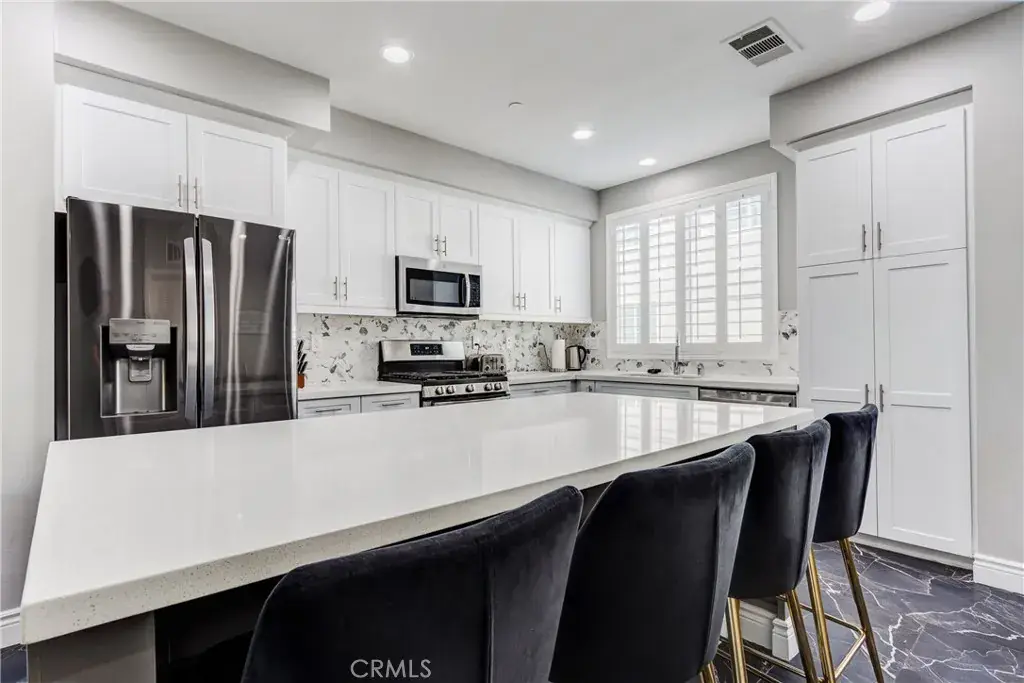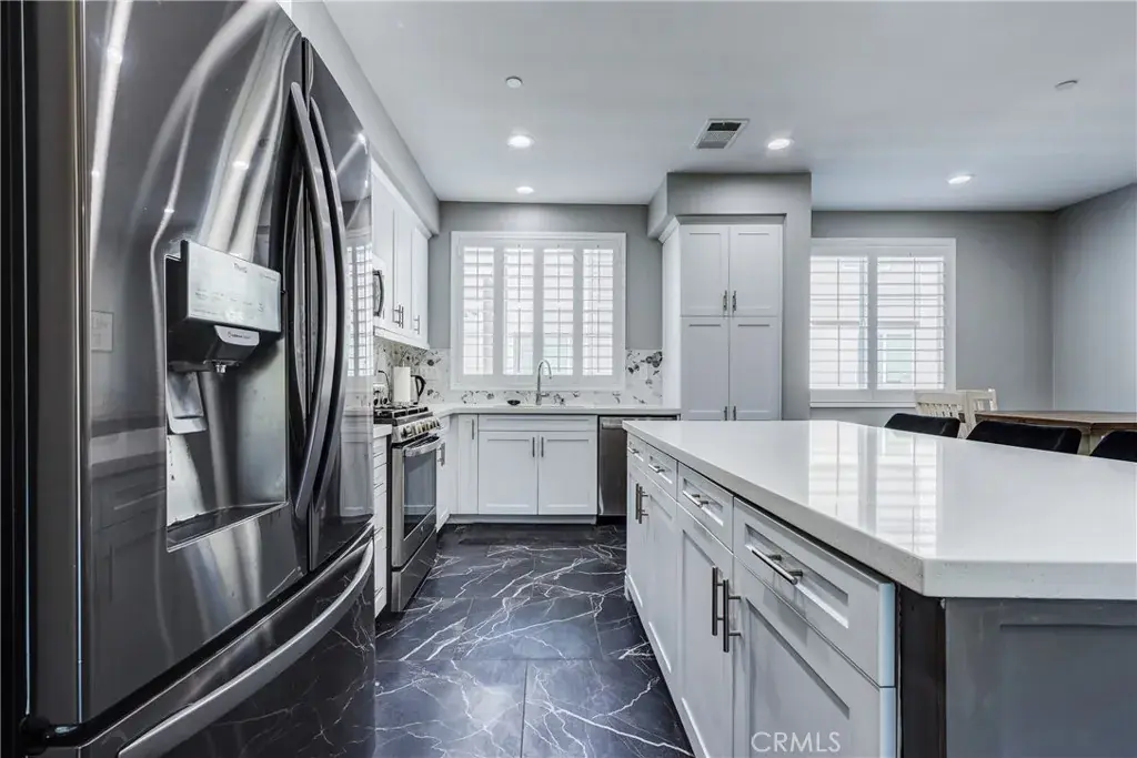 Commuters Dream! Welcome to 625 Savi Dr.#102 located in the Gated Boardwalk Townhomes Community in Corona, CA. This Tri-Level home is Beautifully Upgraded and has 3 Bedrooms, 3 1/2 Bathrooms (One Bed and Full Bath on the entry level). There are Two Primary Bedrooms with en suite bathrooms on the top level and a powder bathroom for your guests on the main level. This Open Concept floor plan is Perfect for Entertaining and features High Ceilings, Spacious Living Room, Remodeled Kitchen with Custom Cabinets, Quarts Counters, Stainless Steel Appliances, New Custom Back Splash, Huge Island with extra storage and seating for guests, Dining room and a Large Private Balcony off the living room that is great for BBQ’s and is an extension of the home. Other upgrades include Luxurious Italian Marble Flooring, 5″ baseboards, Plantation Shutters, flat panel connect for TV, ceiling fans, recessed lighting and Custom Paint. The extra large 2 Car Garage has Brand New Epoxy Flooring, Upgraded lighting, Insulated Garage Doors w/myQ app (Smart Garage Door Opener) , 2 over head storage racks that can hold 1000 lbs each! The Boardwalk Community has a Resort Style Pool & Spa, BBQ & Picnic Area, Kids Play Area and is close to Schools, Parks, Shopping, 91, 71 & 15 Freeways and the Corona North Train Station for an Easy Commute!! Welcome Home!
