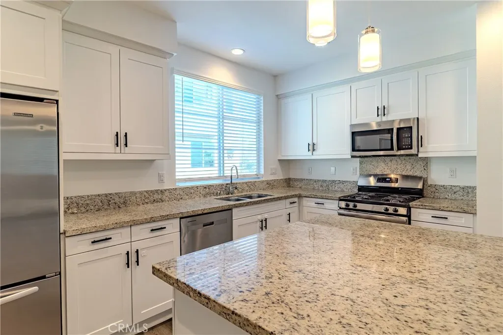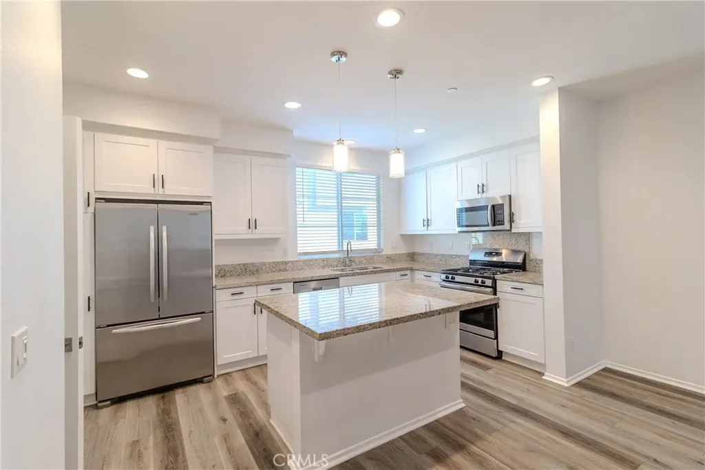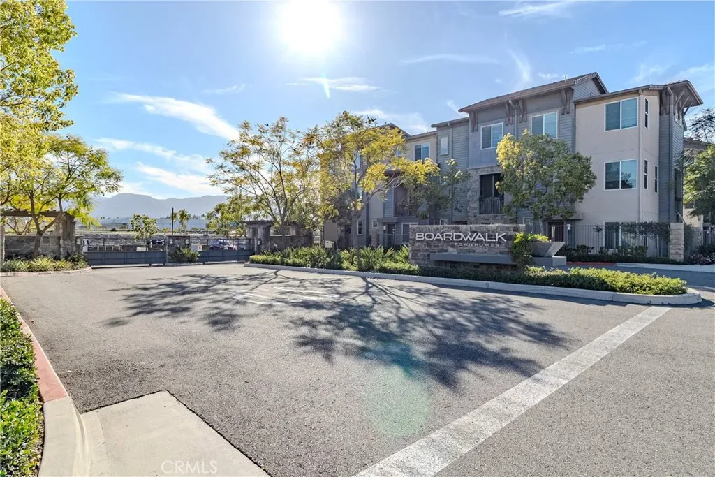 Welcome to this gorgeous and modern, move-in-ready 3-bedroom, 3.5-bath townhome located in the highly desirable Boardwalk community in Corona. Spanning three levels, this well-designed home offers an ideal balance of comfort, functionality, and lifestyle. The first floor features a private office with a half bath, ideal for remote work or a flex space as well as a full size two-car garage with automatic opener, Epoxy Flooring, 220v EV charger and lots of overhead storage shelving as well as a Full house On-Demand gas water heater.. The main living level offers an open-concept layout filled with lots of natural light and a contemporary kitchen with quartz countertops, ample cabinetry, and a full suite of stainless steel appliances, including a KitchenAid refrigerator, dishwasher, microwave, and gas range. The adjacent dining and living areas flow seamlessly as a great room to a private balcony, perfect for relaxing, sipping your morning coffee or evening wine (we are not judging). The top level includes a spacious primary suite with large walk-in closet, dual vanities, and a dedicated shower. Two additional bedrooms share a full hallway bathroom with a tub/shower combination with very nice chrome fixtures. Thoughtful upgrades throughout include laminate wood flooring, central air and heat, in-unit washer and dryer, and a direct-access two-car garage with EV charging hookup. The Office on bottom floor can easily be converted to a 4th bedroom. Residents of the Boardwalk community enjoy access to resort-style amenities, including a pool, spa, a children’s playground and barbecue areas, all within a beautifully maintained, gated setting. Conveniently located near shopping, dining, entertainment, Metrolink, and major freeways, this home offers a low-maintenance lifestyle in one of Corona’s most sought-after neighborhoods.