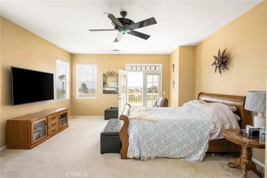 bedroom, which includes a view balcony, a fireplace, a retreat area, and a
