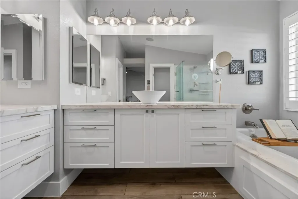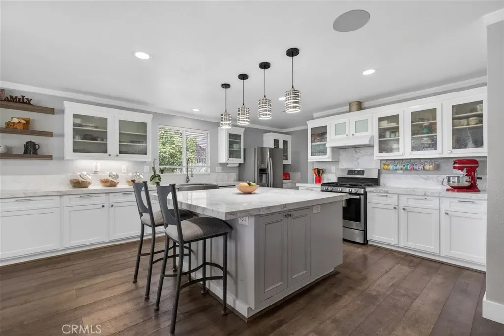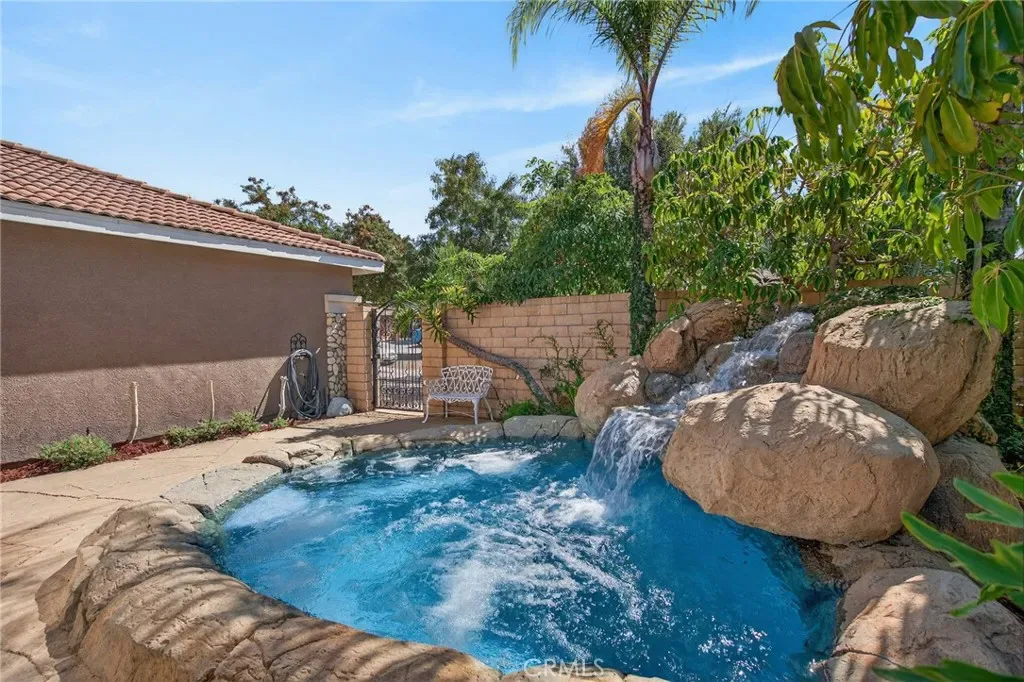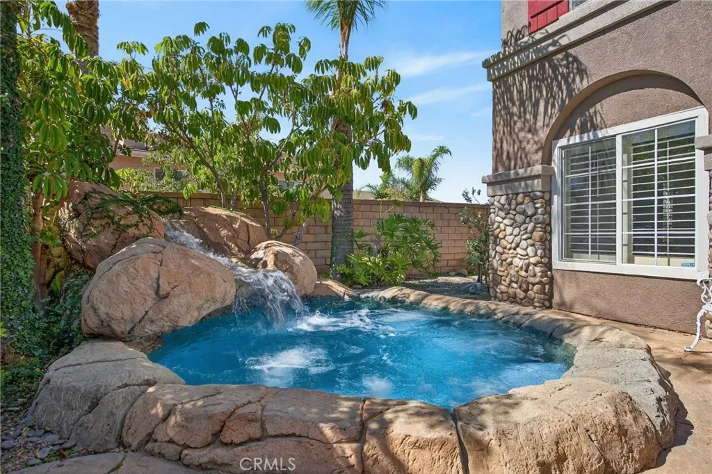 This exceptional residence presents over 3,300 square feet of exquisitely updated living space, situated on a generous and beautifully utilized lot. Fully renovated and well maintained, the home offers a move-in–ready experience with refined upgrades at every turn. From the moment you arrive, the property’s unique sense of luxury becomes clear. A stunning built-in, 10-person heated waterfall spa enhances the front exterior, creating an inviting retreat perfect for both relaxing evenings and memorable gatherings. The expansive floor plan includes open kitchen and gathering space, Formal living and dining room areas, custom stone facade, climate controlled 200 bottle wine cellar discreetly located under the staircase, four spacious bedrooms plus a downstairs office and versatile loft, offering flexibility for work, leisure, or additional living space. Only $4,800 to convert the loft to a bedroom. The three-and-a-half elegantly renovated bathrooms feature marble vanities and beautifully finished marble shower walls, creating a spa-like atmosphere. Showcasing sophisticated craftsmanship throughout—featuring custom cabinetry, premium real wood flooring, and contemporary designer lighting. A state-of-the-art THX Ultra sound system with several house audio zones seamlessly enhances the lower-level living spaces as well as the primary suite, adding modern convenience and ambiance ideal for entertainment and relaxation. The chef-inspired kitchen is a true centerpiece, boasting a large marble island, extensive cabinetry, and marble countertops that span an entire wall for plenty of storage. A substantial walk-in pantry—with an alcove designed to accommodate an additional refrigerator—sits conveniently off the three-car garage, ensuring effortless storage and functionality. Did I mention fully paid-off solar system? (No electric bill – Has a credit as of now) The rear yard is garden-inspired and thoughtfully designed for those who appreciate fresh ingredients. Enjoy mature fruit trees, spice gardens, and flourishing grapevines—an exceptional setting for outdoor dining, gardening, and peaceful retreat. Located within walking distance to local schools and just a short drive from premier shopping, dining, and major freeways, this home offers unmatched convenience without sacrificing luxury.