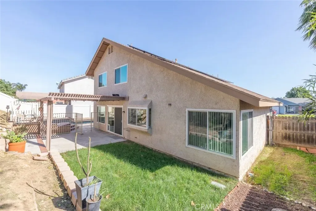 Welcome to this beautifully appointed home that makes a striking first impression with soaring vaulted ceilings and an open, light-filled entry. Thoughtfully upgraded throughout, the home features newer luxury vinyl plank flooring, elegant crown molding, and premium Andersen windows that enhance both comfort and efficiency. The heart of the home is the stunning kitchen, showcasing elegant white cabinetry, stainless steel appliances, and sleek quartz countertops. Designed for both everyday living and entertaining, it opens seamlessly to the inviting family room anchored by a cozy fireplace, the perfect gathering space for family and friends. Step into your private backyard retreat, where a spacious concrete deck and covered patio set the stage for outdoor living. Enjoy sunny California days in the sparkling pool, and unwind in the relaxing spa as the evening cools down — truly an entertainer’s paradise. Upstairs, you’ll find four generously sized bedrooms, including a spacious primary suite featuring a charming peek-a-boo view of the surrounding mountains. Additional interior highlights include ceiling fans, window blinds, and recessed LED lighting throughout. Car lovers and hobbyists will appreciate the oversized 3-car garage, offering abundant storage space for vehicles and toys, with potential for RV parking as well. A fantastic home that blends style, comfort, and functionality — don’t miss your opportunity to make it yours.
