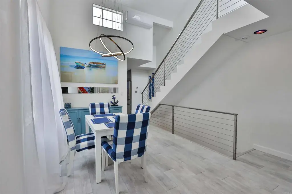 SHORT TERM FURNISHED RENTAL. This 2 bed, 2.5 bath condo is in the perfect location for your vacation. Close to the beach, restaurants, shopping, and The Hotel Del. The modern kitchen is fully stocked with everything you need. The unit features a full-size washer and dryer, AC, parking, and a garage perfect for your bikes and beach gear. The two bedrooms are downstairs while the living, dining, and kitchen are right when you walk in the front door. There is a deck upstairs with BBQ Grill and seating. A great place to relax during those summer evenings. Please note that this condo is up 3 flights of stairs. Inside the condo, there are two sets of stairs. One flight down to the bedrooms and a flight of stairs to the deck area. Condo does not accept pets. Unit does come with 2 beach chairs, umbrella and boogie boards