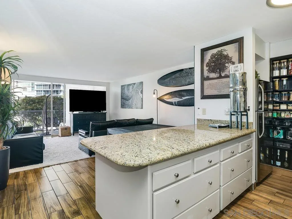 Residence 403 at the Coronado Shores represents one of the most compelling one-bedroom opportunities currently available—just steps from the beach. The residence features new flooring, an in-unit washer and dryer, and a comfortable coastal palette that creates a relaxed, livable atmosphere. The well-designed floor plan lives larger than expected, offering flexibility for full-time living or a beachside retreat. A rare highlight is the combination of tandem parking and an exceptionally large custom private storage room—one of the most substantial at the Shores providing uncommon flexibility for bikes, boards, golf clubs, and beach gear. With a prime location and standout parking and storage, this residence offers strong value within the Shores today. Located within the gated Coronado Shores community, residents enjoy four oceanfront pools, tennis and pickleball courts, a fitness center, and the private Beach Club—all just moments from the sand.