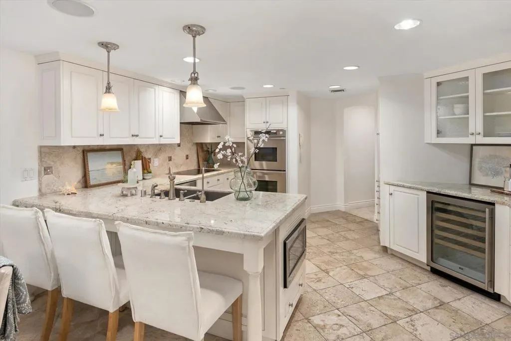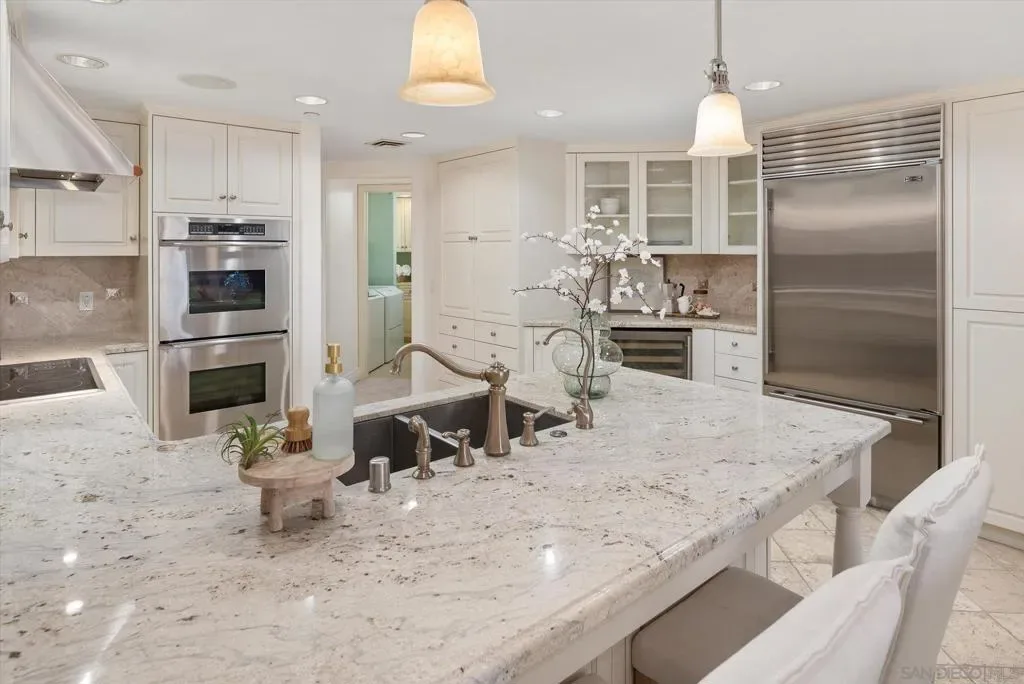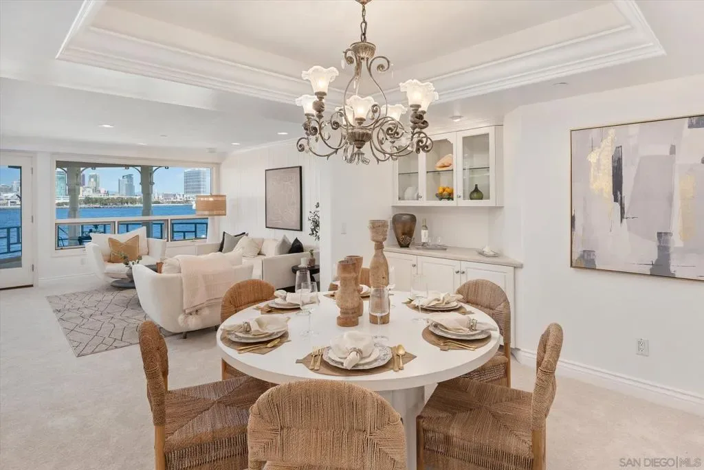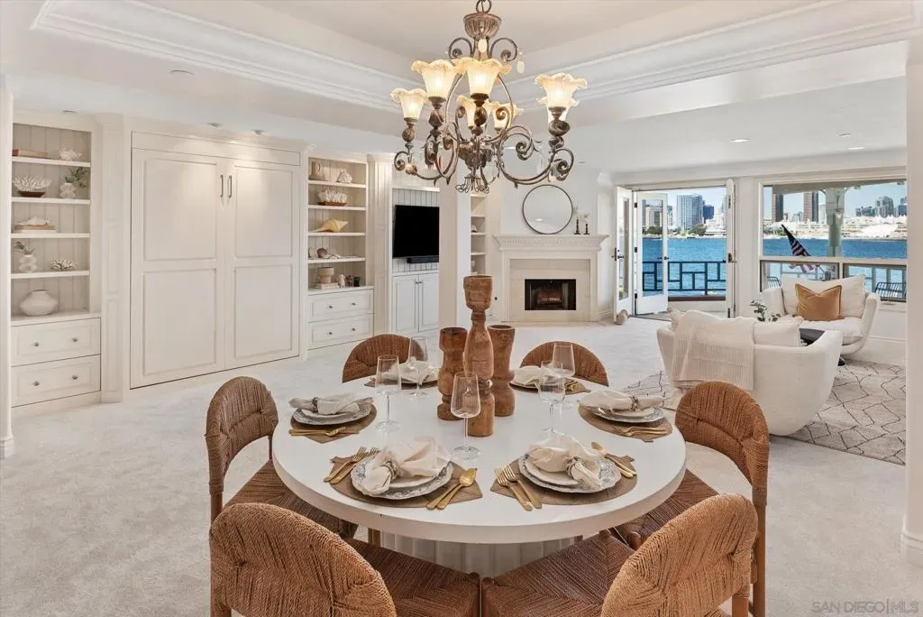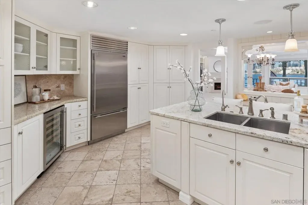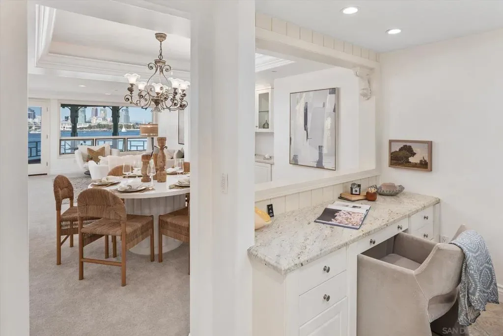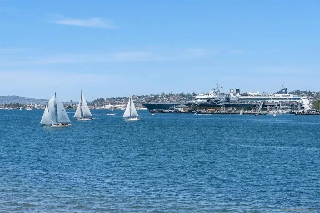 “No Kidding” panoramic full-on-water views of San Diego Bay & the Downtown Skyline. Gorgeously appointed with high-end designer finishes and textiles. SubZero, Dacor and Wolfe appliances. Luxurious & spacious primary bathroom with lovely built-in cabinetry, walk-in closets and ample storage. Beautiful tiled walk-in shower. Built in cabinetry thru-out with tastefully hidden Murphy bed in living room and new premium carpet. Exquisite marble flooring in half bath. Absolutely amazing water views from the kitchen, dining & living rooms. Enjoy fireworks, ships and boats saililng by from your covered patio terrace as well as having full access to the fun sandy beach and grass lawn right outside your unit. Hop on the ferry to the Gaslamp, Rady’s Shell, Padres PETCO park, Seaport Village & Port of San Diego. Stroll to Coronado restaurants & shopping. The Landing offers a wonderful outdoor heated pool, fitness center, lovely gardens & landscaping. 2 underground parking spaces right next to the elevator. Truly an opportunity of a lifetime! This is an exceptional home with breathtaking views that rarely comes up on the market. A stunning & rare beauty! This is truly an amazing place to live. The full panoramic views of San Diego Bay are absolutely breathtaking and seductive! Enjoy watching ships and boats sail through the harbor from your private terrace. Hop onto the ferry for dining & shops at the famous Gaslamp, or enjoy some fantastic live music entertainment at the outdoor Rady’s Shell or take in a San Diego Padres game at PETCO park. Easy peezy because it is all right there in your backyard. This luxurious unit has gorgeous finishes. Wait till you see the stunning marble flooring in the half bath. BEEE-U-TI-FUL! The primary bathroom boasts a beautifully tiled walk-in shower, lovely cabinetry with ample storage and walk-in closets. New carpet and a Murphy bed tastefully built-in to the living room cabinetry. The Landing offers a heated outdoor pool right on the water and a fitness center, meeting rooms and lovely landscaped grounds including a gorgeous rose garden outside the entrance. 2 parking spaces are located right as you come out of the elevator in an underground garage. This is truly a very special place. The views are intoxicating!