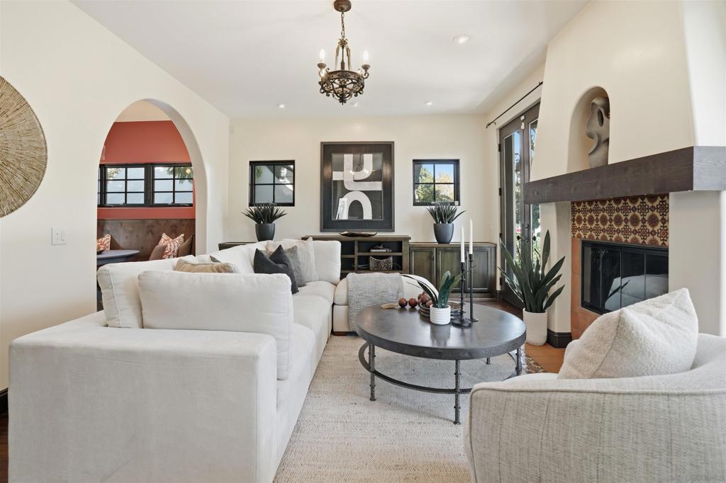 Ideally located near the bay, this island-inspired villa offers generous interior scale and a relaxed coastal setting, with over 4,600 square feet of interior living space. Situated at 258 H Avenue, the residence includes six bedrooms within the main home – one on the main floor, along with a private one-bedroom guest casita above the two-car garage. Living spaces unfold from a gated front courtyard with an outdoor fireplace, showcasing effortless indoor-outdoor living from the moment of arrival. The main living areas flow seamlessly into a modern-rustic kitchen and a separate dining room, designed for everyday living as well as entertaining at scale. The primary suite serves as a serene retreat, featuring tranquil tropical views over the front patio, a spa-inspired ensuite, and dual walk-in closets. A substantial basement space offers exceptional versatility – adaptable as a media room, fitness space, home office, or additional uses. Lush landscaping surrounds a central courtyard, and at the pinnacle of the home, an expansive rooftop deck captures sweeping bay and city views – offering the very best of Coronado living.
