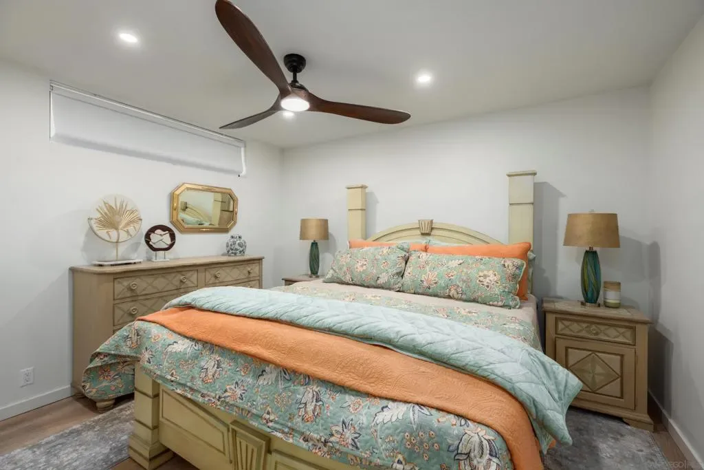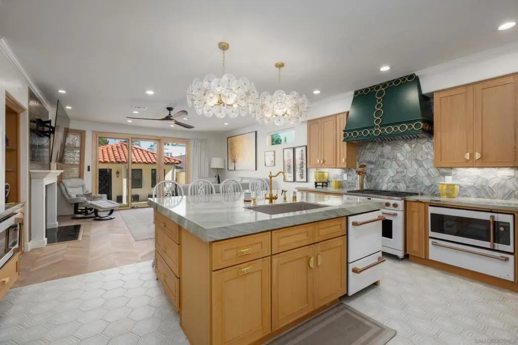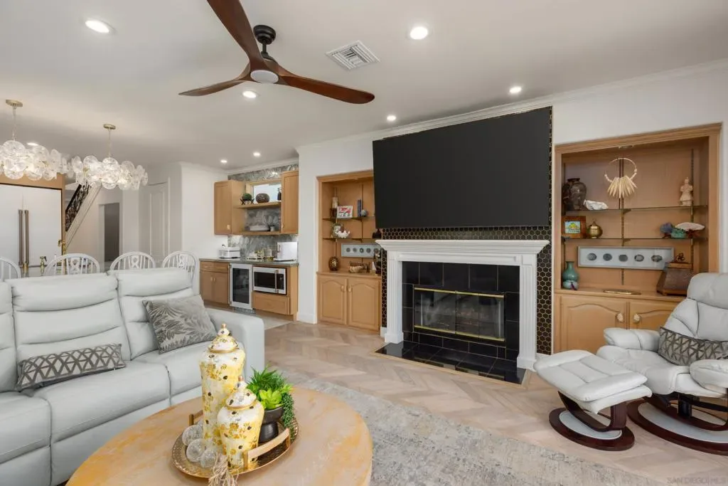 Introducing a Coronado masterpiece, reimagined from the studs up with no detail left untouched. Originally built in 1991 by a respected local builder, this home has undergone a complete designer gut-remodel, emerging as a stunning blend of Luxury Transitional and California Coastal style. This home can be offered completely furnished and turnkey. Every surface has been elevated: solid white oak herringbone floors run throughout, all-new Pella Design doors and windows flood the interiors with natural light, and powder-coated iron accents and designer lighting lend a timeless sophistication to every space. The kitchen is a showpiece, featuring quartzite countertops, solid white oak cabinets, and a full GE Café appliance suite. The main level offers light-filled living spaces that flow seamlessly to a private outdoor retreat. Sun-kissed patios and turf lawn are embraced by professionally landscaped flora. Upstairs, cathedral ceilings create an airy, elevated feel in the primary suite, complete with a spa-like bathroom, private fireplace, auto shades, and a balcony spanning the full width of the home. An internal staircase leads up to the rooftop deck, where sweeping views of the San Diego skyline and harbor provide a backdrop that never gets old. The property also includes a fully owned solar system, whole-home water filtration, new stucco, tankless water heater, and a 2-car garage at the rear of this desirable street-to-alley lot. Coronado’s beaches, shops, restaurants, and schools are moments away. A rare opportunity in one of Southern California’s most coveted communities.