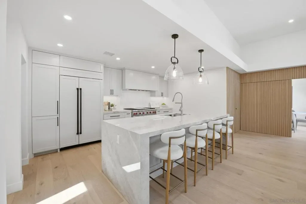 Fully renovated single-story home in the best area of Coronado on a spacious 7,500 SF lot. This 4 bed, 4 bath residence showcases a stunning chef’s kitchen with custom wood cabinetry, a 36″ Wolf range, high-end Sub-Zero refrigeration, two dishwashers, a kitchenette, and a counter bar with wine fridge—perfect for entertaining. Beautifully renovated marble bathrooms feature designer finishes and a clean, modern look throughout, complemented by new wood flooring across the home. The property also includes a new roof, new electrical wiring, new windows, and a brand-new garage. All-new landscaping, inviting front and back patios, and an expansive front yard ideal for a kids’ playground complete this turnkey island retreat. Fully renovated single-story home in the best area of Coronado on a spacious 7,500 SF lot. This 4 bed, 4 bath residence showcases a stunning chef’s kitchen with custom wood cabinetry, a 36″ Wolf range, high-end Sub-Zero refrigeration, two dishwashers, a kitchenette, and a counter bar with wine fridge—perfect for entertaining. Beautifully renovated marble bathrooms feature designer finishes and a clean, modern look throughout, complemented by new wood flooring across the home. The property also includes a new roof, new electrical wiring, new windows, and a brand-new garage. All-new landscaping, inviting front and back patios, and an expansive front yard ideal for a kids’ playground complete this turnkey island retreat.