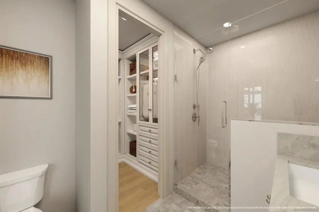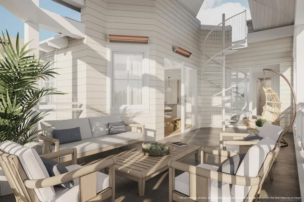 Welcome to THE GRAND, the new definition of luxury living in Coronado. This extraordinary penthouse residence is crowned by a breathtaking rotunda terrace, a true architectural showpiece designed to capture light, coastal breezes & views in the most enchanting way. An expansive private rooftop deck invites unforgettable sunsets & effortless entertaining, while a spacious two-car garage & oversized storage complete this exceptional offering of elevated living. Perfectly positioned in the heart of Coronado, enjoy front-row views of the 4th of July and Christmas parades, steps from Spreckels concerts and the island’s finest dining and downtown. Inspired by the timeless grandeur of Coronado’s architecture, THE GRAND was designed by AIA award winning architect Christian Rice. Residents will have an option to enjoy exclusive membership access to one of the world’s most celebrated beachfront resorts, the Del Club at the Hotel Del Coronado, seamlessly paired with the Hotel Del’s resort-style amenities creating a natural extension of luxury living*. More than a residence. A private retreat. A lifestyle beyond compare. The Grand Coronado, a boutique collection of 12 luxury residences masterfully designed by AIA award winning architect Christian Rice. Each home offers its own unique features, allowing you to choose the residence that best fits your lifestyle. Each residence offers single-level living for exceptional comfort and ease. The building includes a central elevator, with three select residences enjoying direct, private elevator access. Additional conveniences include a trash chute, dedicated storage spaces, and thoughtfully planned parking. Each residence includes two parking spaces, with a mix of private two-car garages and tandem configurations. The floorplans are exceptionally well designed, with 11 of the 12 residences offering three bedrooms, and featuring 2.5 or 3 bathrooms, all en-suite. Only three exclusive residences boast private rooftop decks, offering elevated outdoor living and captivating views. Every residence is turn-key, brand new, and impeccably appointed, showcasing a curated collection of elevated design elements…warm, sophisticated neutral palettes, premium quartz surfaces, polished nickel fixtures, heated bathroom floors for year-round indulgence, and customized designer-selected finishes throughout. HOA dues are estimated at $1,000 per month. Perfectly situated near everything that defines the Coronado lifestyle, The Grand offers a rare opportunity to enjoy luxury, convenience, and timeless design in one of the most desirable locations on the island. Estimated completion summer 2026. Materials, specifications, plans, pricing, designs, schedules, and delivery dates may change without prior notice. All renderings, photos, and illustrations are conceptual and may not reflect the final features or views. The information provided is not guaranteed to be accurate, complete, or suitable for any particular purpose. * Del Club membership is contingent upon approval by the Del Club and shall be at The Del Club’s discretion.