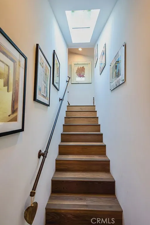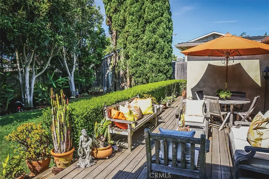 Optimized for the Southern California lifestyle, this gem emphasizes an effortless indoor-outdoor flow. The interior is bathed in natural light and coastal air via two sets of French doors in the living room and expansive sliding glass doors in the dining and guest areas. The second-level primary suite serves as a private sanctuary, boasting a custom bathroom with an oversized walk-in shower and a spacious walk-in closet. Dual sliders within the suite invite refreshing ocean breezes, while a private sun deck offers an ideal space for relaxation.