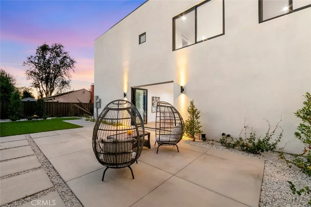 The backyard is designed for low maintenance living with a clean patio space and artificial grass, offering a perfect setting for outdoor enjoyment without the upkeep. A spacious three car garage provides ample parking and storage.