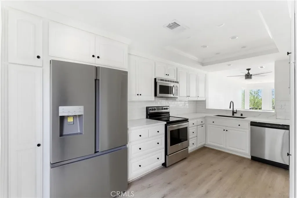 Beautifully remodeled unit with views of Catalina Island, the Santa Ana River, and “The Bluffs” Fairview Park. A great unit with new appliances in the kitchen that flows into a cozy family room with a fireplace and amazing views. Upstairs there are two bedrooms and two bathrooms, and in unit laundry in the hall. The primary bedroom has a great view of the ocean and Fairview Park. This quiet community called Mesa Bluff is perfect for young professionals or empty nesters looking to downsize in a great location near great restaurants, shopping, and the beach. This unit comes with a one car detached garage and an assigned parking place.