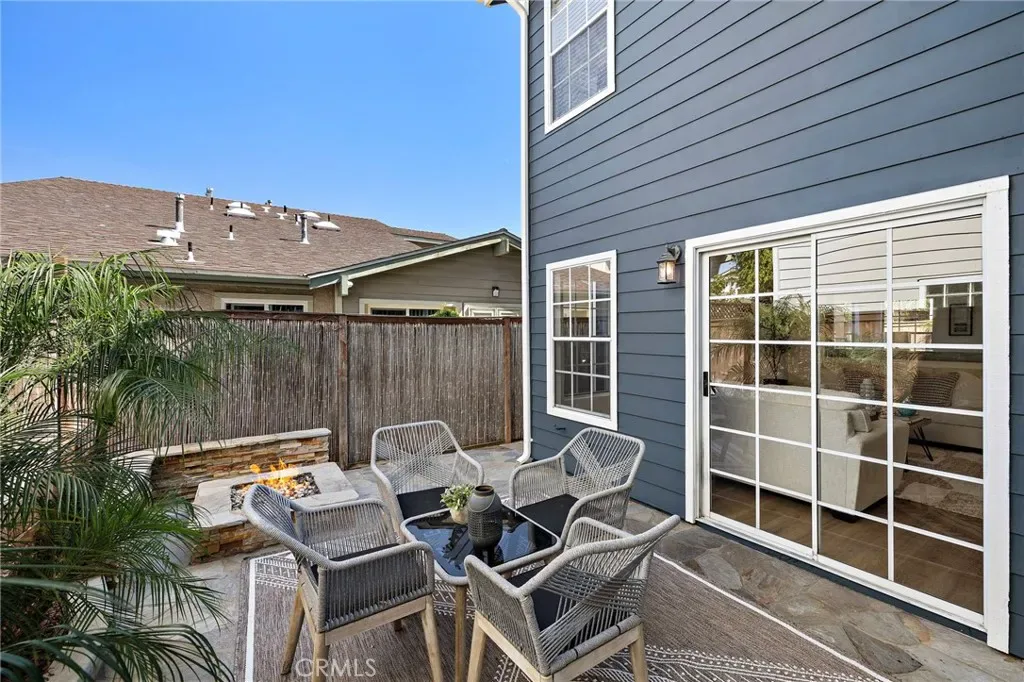 Outdoor space is both usable and well laid out. The wrap-around yard includes a built-in seating bench and fire pit on one side, with additional space off the kitchen that works well for dining or relaxing.