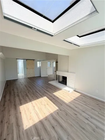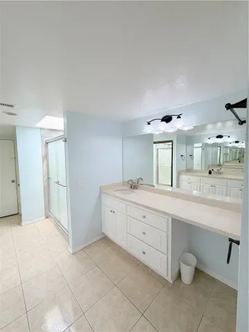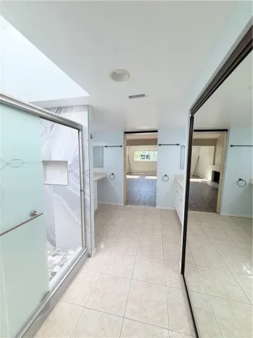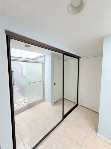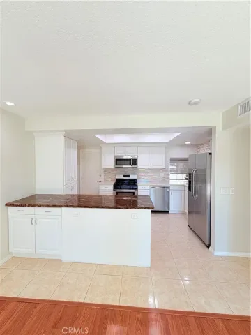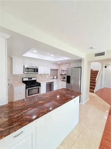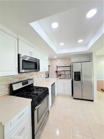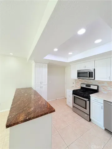 Low-e, new window and door treatments with roller shades, new A/C unit, furnace and all new ducting, fresh paint, and more… Huge primary suite with Fireplace, lots of natural light with 2 skylights w/shades and a large on suite primary bath including 2 separate sink vanities, makeup counter, large walk-in shower with skylight and 2 huge closet spaces. The 2nd bedroom is also very generous in size as it has been extended to add extra square footage and can be used as an office space or kids play area. Ample closet space with mirrored closet doors. The 3rd bedroom has its own private patio/deck with dual pane sliding doors, ample closet space with mirrored closet doors. All bedrooms are upstairs. The living room is expansive in size and features a gas fireplace, built-in cabinetry, recessed lighting, surround sound speakers and an abundance of natural light with access to the back patio with dual pane sliding doors. Separate dining room adjacent to the kitchen with chandelier, recessed lighting, abundance of natural light and access to back patio with dual pane sliding doors. The beautiful kitchen has a gorgeous stone island, white shaker cabinets with self closing doors and drawers, stainless steel Frigidaire gas range, builtin microwave, refrigerator and dishwasher, recessed lighting and bay window. Kitchen also has direct access to one garage with washer and dryer. 2 single car garages, one with door access by front door and second has direct access to the home. The home also features a private and secluded garden patio surrounded by mature trees with access from both the living and dining rooms.The HOA maintains 2 sparkling swimming pools and spas with newer paver decks. The grounds are all beautifully landscaped and there are also 2 large greenbelt areas for dogs and kids to play.