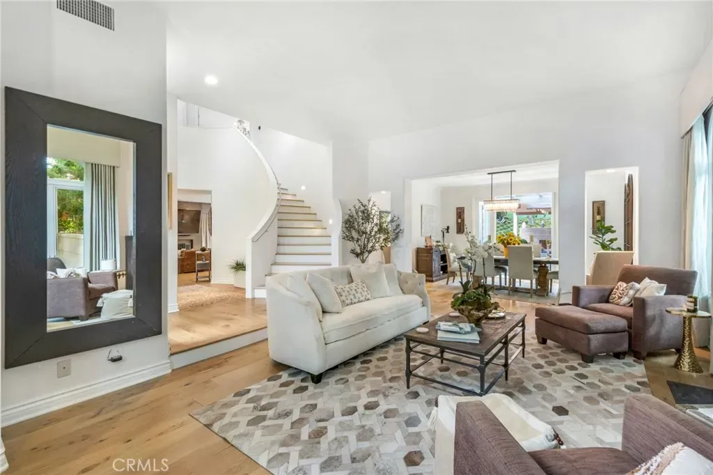 Welcome home to this exceptionally private estate nestled on a quiet cul-de-sac within the prestigious guard-gated community of Coto de Caza. Set on an over 22,000 square foot lot, this beautifully updated 4-bedroom, 3-bathroom home with a spacious loft offers the perfect blend of luxury, comfort, and resort-style living. From the moment you arrive, the property evokes timeless Tuscan charm, with stately mature Italian cypress trees, pebble gravel walkways, and perfectly manicured hedges creating a warm, Mediterranean-inspired landscape that feels both elegant and inviting. Step inside to discover fresh interior and exterior paint, stunning refinished European oak floors, three separate interior fireplaces, and a light-filled floor plan designed for modern living. A breathtaking Murano glass chandelier makes a grand statement in the foyer, setting the tone for the sophistication found throughout. The primary owner’s suite is a sanctuary, complete with a retreat and a double-sided fireplace shared with the spa-like bathroom and an expansive, fully built-out closet. All upstairs bedrooms feature brand-new carpet, while the chef’s kitchen showcases resurfaced marble countertops for a clean, elevated finish, along with a Wolf range and Sub-Zero refrigerator. The upgraded laundry room blends style and function, including a Scotsman nugget ice machine, and the versatile loft offers the perfect space for a home office, playroom, lounge area, or fifth bedroom. Outdoors, the expansive backyard is truly an entertainer’s dream, complete with a sparkling saltwater pool and spa, a beautiful oversized outdoor fireplace, a private orchard, and a low-maintenance turfed side yard featuring a playground, with plenty of room to add an ADU. The lush landscaping is filled with agaves, exotic greenery, and an abundance of fruit trees enhancing the home’s Tuscan ambiance. Brand-new outdoor awnings and a pergola provide shade and comfort, creating an ideal space for relaxing or hosting gatherings year-round, both indoors and out. Located in one of Orange County’s most sought-after gated communities, this home offers the ultimate privacy, beauty, and an exceptional lifestyle.