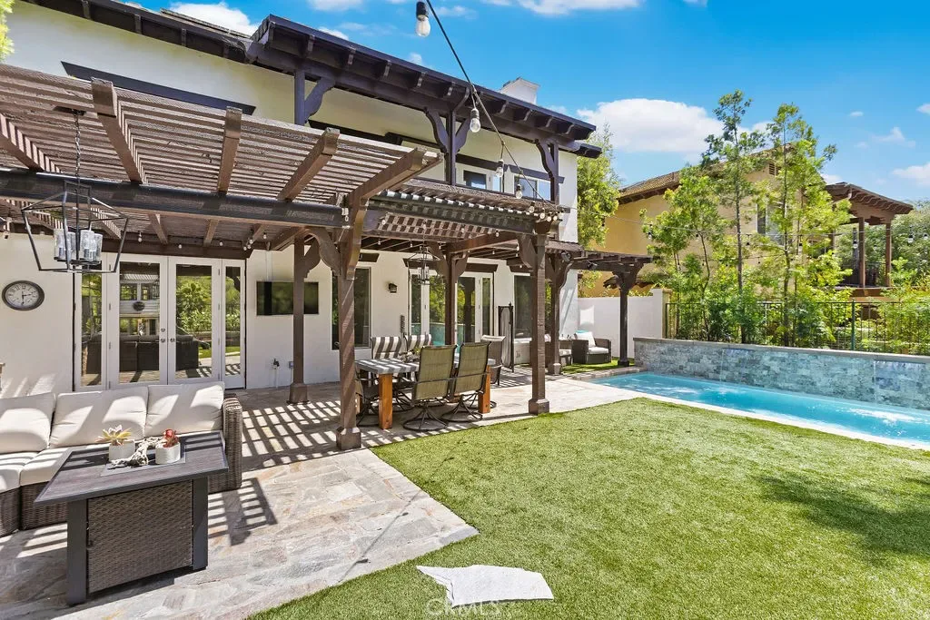 Experience resort style living at its finest in this stunning home, perfectly positioned on the 2nd hole of the prestigious Coto de Caza’s South Course. This meticulously designed home features 4 spacious bedrooms, a dedicated office, and 3 bathrooms, all accented by elegant shutters. The newly remodeled gourmet kitchen shines with custom-built cabinetry, sleek quartzite countertops, a large walk-in pantry, and a spacious island with countertop seating. The adjacent great room serves as a central gathering hub, anchored by a striking stacked stone fireplace. The primary suite with a balcony overlooking the golf course is a true sanctuary. The spa-inspired bath with a double vanity, free-standing soaking tub, and large walk-in shower is accented with stunning marble—the expansive walk-in closet is never-ending. Step outside to your private entertainer’s oasis, which is masterfully designed with a newly rebuilt custom PebbleTech pool (newer equipment), low-maintenance turf, and a refined stone patio. Summer hosting is effortless with the built-in outdoor BBQ island featuring a professional-grade Viking Grill—all set against the serene backdrop of the golf course. This home is as functional as it is beautiful, featuring a 3-car garage with epoxy flooring, a water softener, and fully paid-for solar with a backup battery for ultimate energy efficiency and peace of mind.