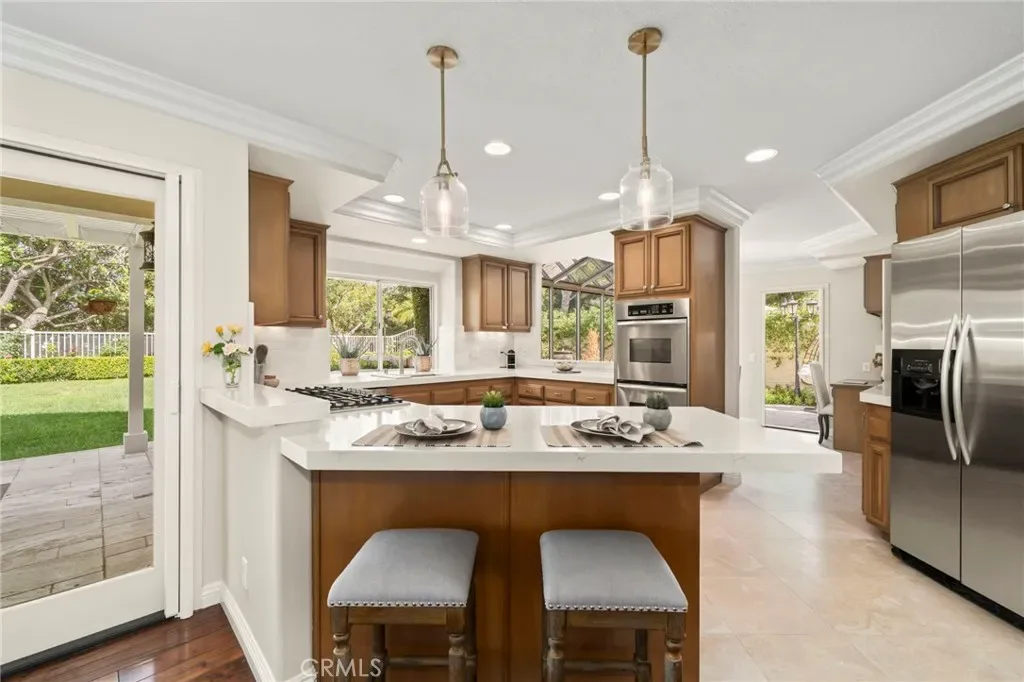 Welcome to 5 Pinewood in the coveted guard-gated community of Coto de Caza, where thoughtful design, timeless upgrades, and an exceptional setting come together on a single-loaded cul-de-sac street. Set on an expansive 11,000+ sq. ft. lot, the private backyard offers a tranquil retreat designed for year-round enjoyment, featuring a fire pit, pergola, lush lawn, beautifully curated hardscape, and mature citrus trees—including orange and lime—ideal for both entertaining and everyday living. A grand entry introduces soaring ceilings and an abundance of natural light that fill the formal living and dining spaces, creating an inviting and open ambiance. The upgraded gourmet kitchen is the heart of the home, showcasing quartz countertops, a designer tile backsplash, rich oak cabinetry, stainless steel appliances including a double oven, and a walk-in pantry. Adjacent to the kitchen, a generously sized breakfast nook is surrounded by large windows overlooking the backyard, offering a bright and welcoming space for casual dining. Seamlessly connected, the family room offers a warm and comfortable gathering space with a fireplace and an additional area perfect for a dry bar or beverage station. The main level is thoughtfully designed with a spacious bedroom and upgraded en-suite bath—ideal for guests or multi-generational living—alongside a dedicated laundry room and a three-car attached garage with epoxy flooring, ample storage and EV charging capability. Upstairs, a versatile bonus room provides flexible living space, while the primary suite offers a true retreat with its own fireplace, generous proportions, and a spa-inspired bathroom. Two additional secondary bedrooms and a beautifully remodeled bathroom with dual vanities complete the upper level. Additional highlights include a FULLY RE-PIPED plumbing system, a kitchen drinking water filtration system, and smart home features such as a Google Nest thermostat. Price Includes washer & dryer,kitchen refrigerator, patio space heater, water fountain and bird bath. 5 Pinewood presents a rare opportunity to enjoy space, privacy, and comfort in one of Coto de Caza’s most desirable locations. Experience the best of Coto de Caza, where premier living meets award-winning schools, a world-class Golf & Racquet Club, scenic sports parks, and easy access to hiking, biking, and equestrian trails. No Mello roos=low tax rate.