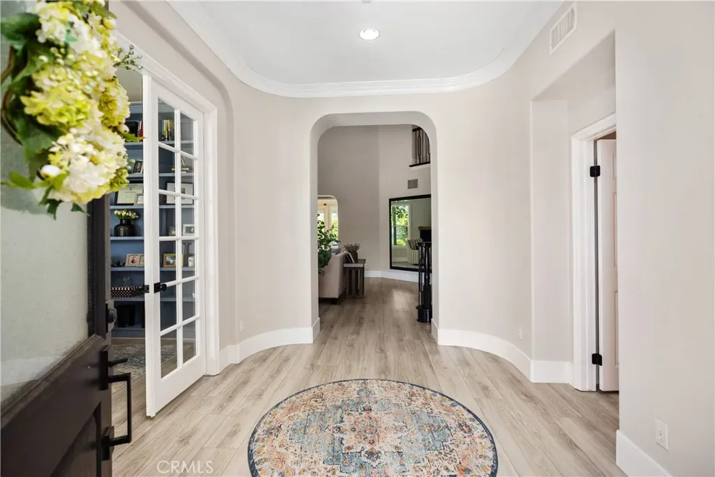 Set on an expansive corner lot in guard-gated Coto de Caza, this highly upgraded property is the largest Terra Vida model available, complete with nearly $550K in recent improvements, including owned solar, renovated baths, and a private pool and spa. A landscaped front yard and 3-car garage welcome you home. Inside, approx. 4,483 sq ft is designed for entertaining and relaxation. A grand two-story living room opens to the light-filled formal dining room and butler’s pantry, while a sweeping staircase beckons to bedrooms above. This wonderful floor plan includes a private office with French doors and a bonus loft, which can be converted to an additional bedroom. The airy, open concept continues in a large family room and adjacent sunroom/breakfast nook that flow through French doors to the outdoor living areas. Craftsmanship is on display with custom built-ins in the private home office and the family room. The chef’s kitchen features a 6-burner Viking gas range, Venta Hood with warming lights and racks, GE Monogram built-in refrigerator, double ovens, a warming oven, and a walk-in pantry for extra storage. Four bedrooms and 4.5 baths include a main-level bedroom suite with new closet organizers and a private full bath remodeled in 2025. Upstairs, the primary suite offers a fireplace retreat, two walk-in closets with new upgraded organizers, and a private view deck. The primary bath is also newly renovated with spa-like amenities. The two additional spacious bedrooms each have ensuite bathrooms. Outside, the reimagined backyard is perfect for both gatherings and quiet afternoons, with an in-ground pool and spa surrounded by sun-kissed hardscape and low-maintenance turf, all with excellent privacy. Recent upgrades also include newer LVP and carpet, banisters, interior and exterior paint, a whole-house repipe in 2023, new front door, plantation shutters and remote roller shades, garage door opener, epoxy garage floors, new lighting, retiled fireplaces in the living and family rooms, refreshed landscaping, solar, door hardware, and a whole house fan. The sought-after gated community of Coto de Caza features horse trails, hiking and biking, a clubhouse, gym, pool, spa, BBQ areas, tennis, and two Robert Trent Jones Jr.-designed golf courses at the Coto de Caza Golf & Racquet Club, all only minutes from diverse shopping and dining. With its blend of generous scale, thoughtful upgrades, and prime Coto de Caza location, this home delivers an exclusive lifestyle.