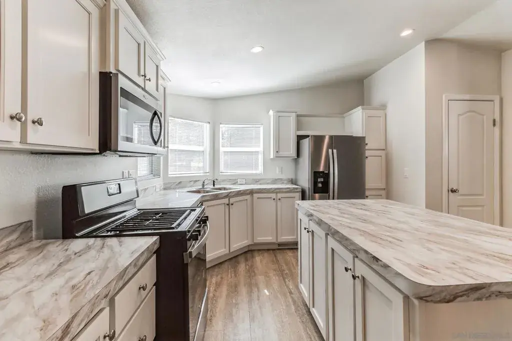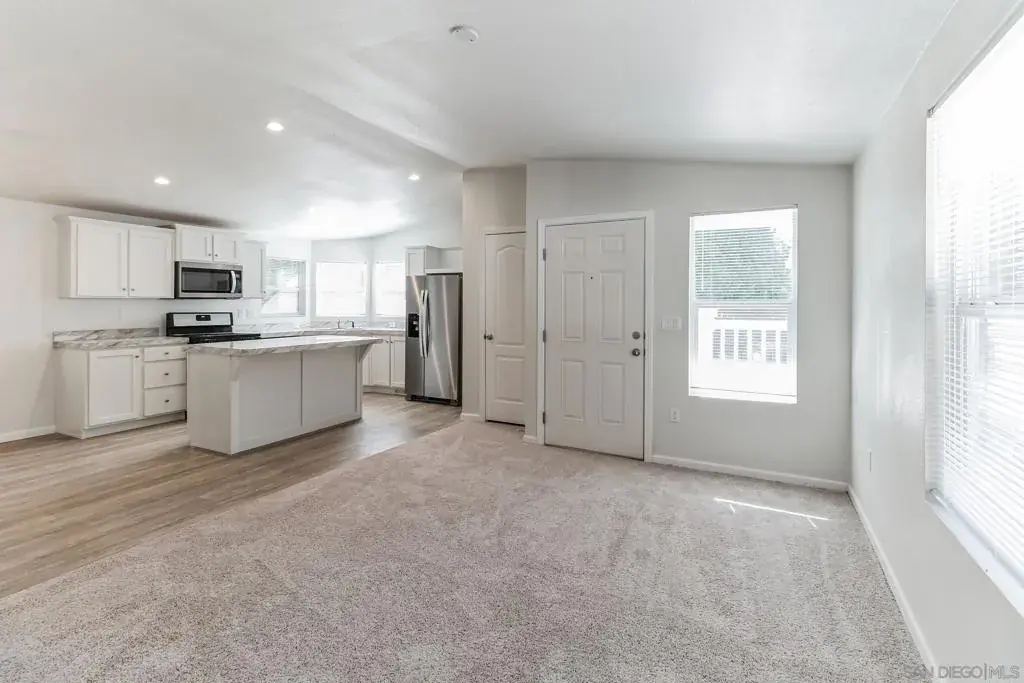 Featuring a large bright lot. This gorgeous open floor plan is a 3bd and 2-bath home. It has new stainless steel appliances and a large island in the kitchen. This charming home has a neutral color scheme. Enjoy cozy mornings on a lovely front porch. Located in the highly desired family park of Valley of Enchantment. This community offers many amenities. Come and see it for yourself This is a leased park- space rent is $1080/month