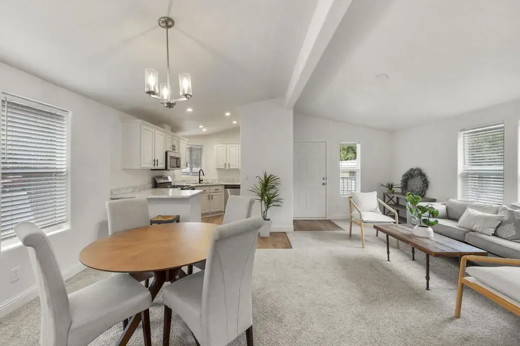 This newly built 3-bedroom, 2-bath manufactured home in the highly desired family park of Valley of Enchantment offers the perfect mix of modern comfort and mountain charm. Built with durable 2×4 construction and a 60 lb. roof load for snow, it provides lasting quality and peace of mind. The bright, open floor plan features vinyl sheet flooring, cozy carpeted bedrooms, and a spacious kitchen with new appliances. The main bedroom includes a large walk-in closet, creating the ideal retreat. With its stylish finishes and inviting design, this home is a fantastic starter for families or first-time buyers seeking quality and value. Space rent is $1,049 per month.