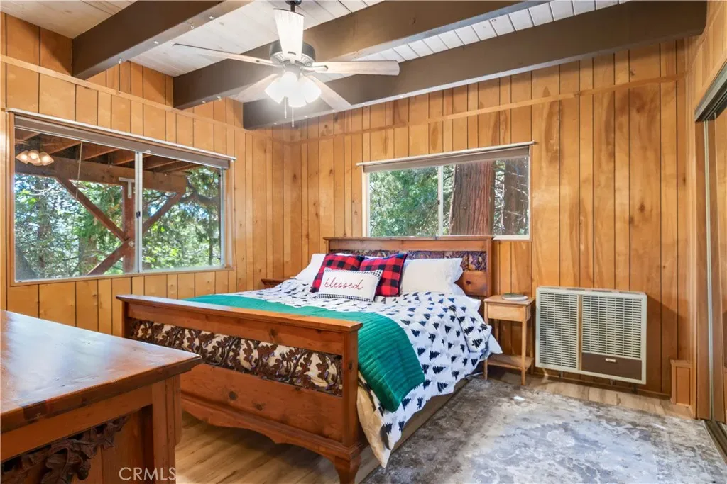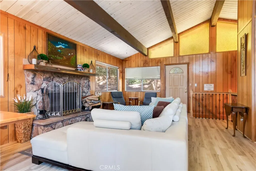 PRICE REDUCTION!!!Charming 4-bedroom, 3-bath mountain home offering approximately 1,600 sq ft on a rare double lot (.39 acres) surrounded by mature trees. The open-concept living area features large windows, a wood-burning fireplace, and an updated kitchen with breakfast bar. Enjoy beautiful San Bernardino Mountain views from the spacious deck. Includes a detached tandem garage, bonus room, and extra cul-de-sac parking. Conveniently located near Lake Gregory, hiking, shops, and dining.
