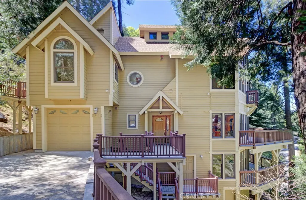 Nestled on a spacious, tree-filled lot surrounded by majestic cedars, oaks, pines, and dogwoods, this Crestline mountain home offers the perfect blend of natural beauty and thoughtful design. With breathtaking mountain views and a setting that feels like your own private forest, this property is a true sanctuary. Inside, you’ll find 4 bedrooms and 4 bathrooms across a multi-level layout designed with privacy and flexibility in mind. The home features four separate entrances, making it ideal for multi-generational living or potential rental opportunities. The lowest floor functions perfectly as a separate “granny” apartment or guest suite. Built for comfort and efficiency, the home includes 6-inch insulated exterior walls, durable Hardie Board siding, and Anderson Wood Double Paned windows for superior energy performance. The interior boasts birch hardwood flooring, tile bathrooms, granite kitchen countertops, and a heated floor in the master bathroom for added luxury. Additional features include a level driveway, a one-car garage, and a well-designed floorplan that brings in natural light and showcases the stunning surroundings. Whether you’re looking for a peaceful primary residence, a vacation escape, or an investment property, this home checks every box.