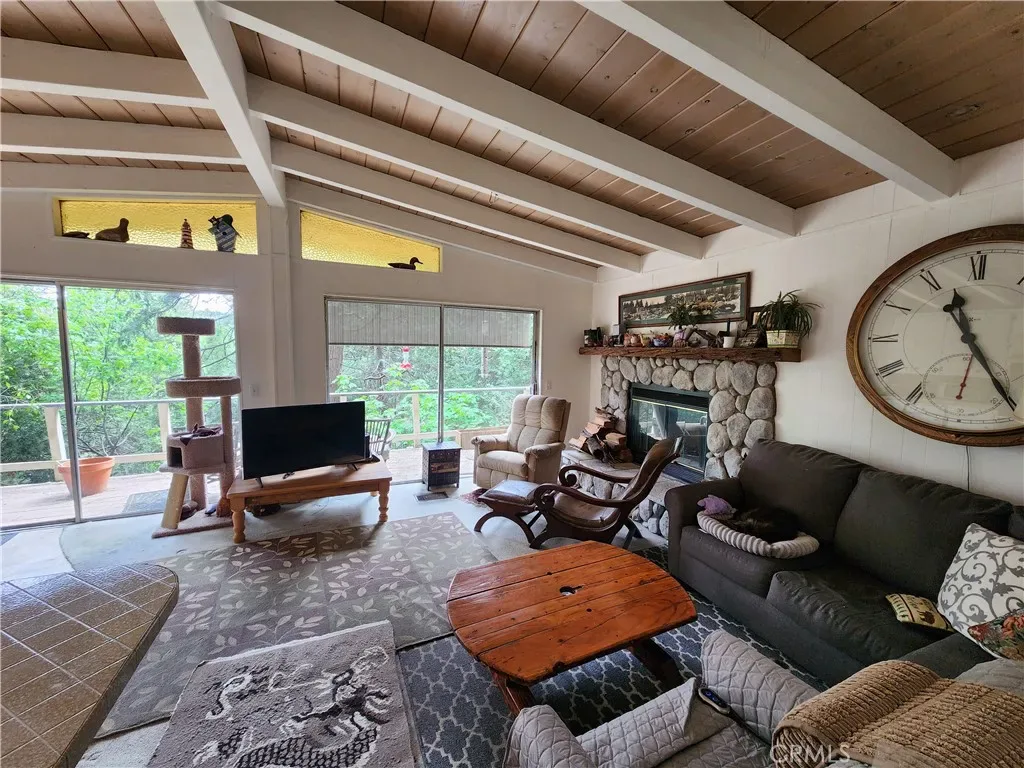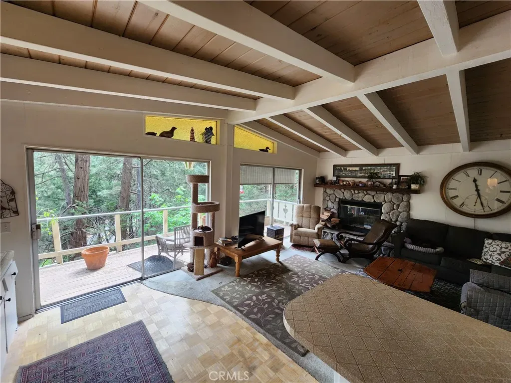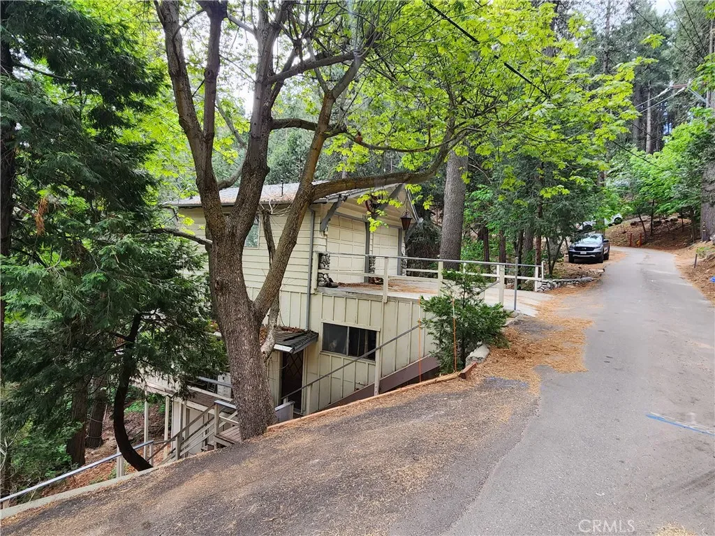 Charming mountain fixer home with great upside potential! Features an oversized garage and tons of parking! Great open floorplan with open beamed ceilings, cozy rock fireplace and generous wall of windows facing out to a lush forested setting. Nice sense of privacy and feeling of being in the woods/forest. Home is somewhat split level with kitchen living room bathroom area and then stairs up to two bedrooms plus a tiny kids sleeping loft. Owner prefers cash or hard money offers and no repairs will be made by the owner. Home is in need of lots of TLC and won’t go FHA/VA or Conventional financing.