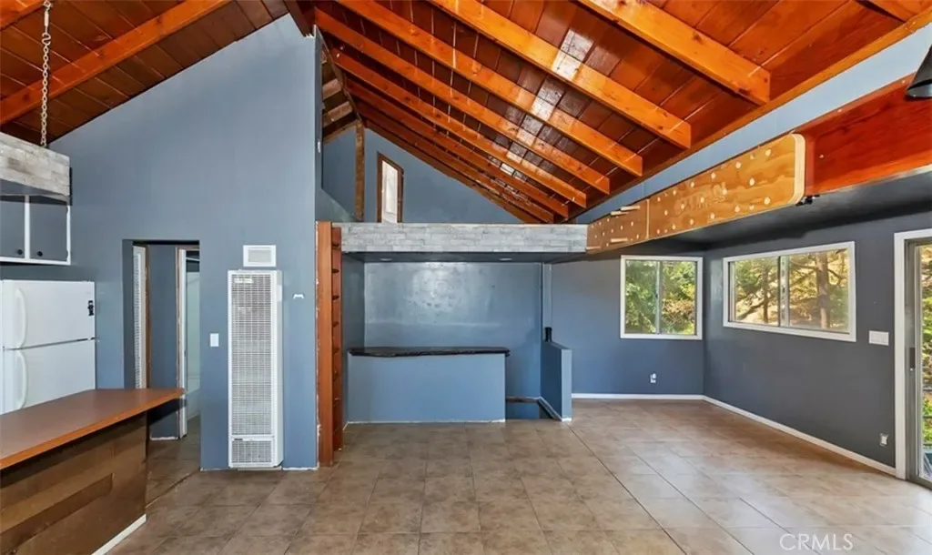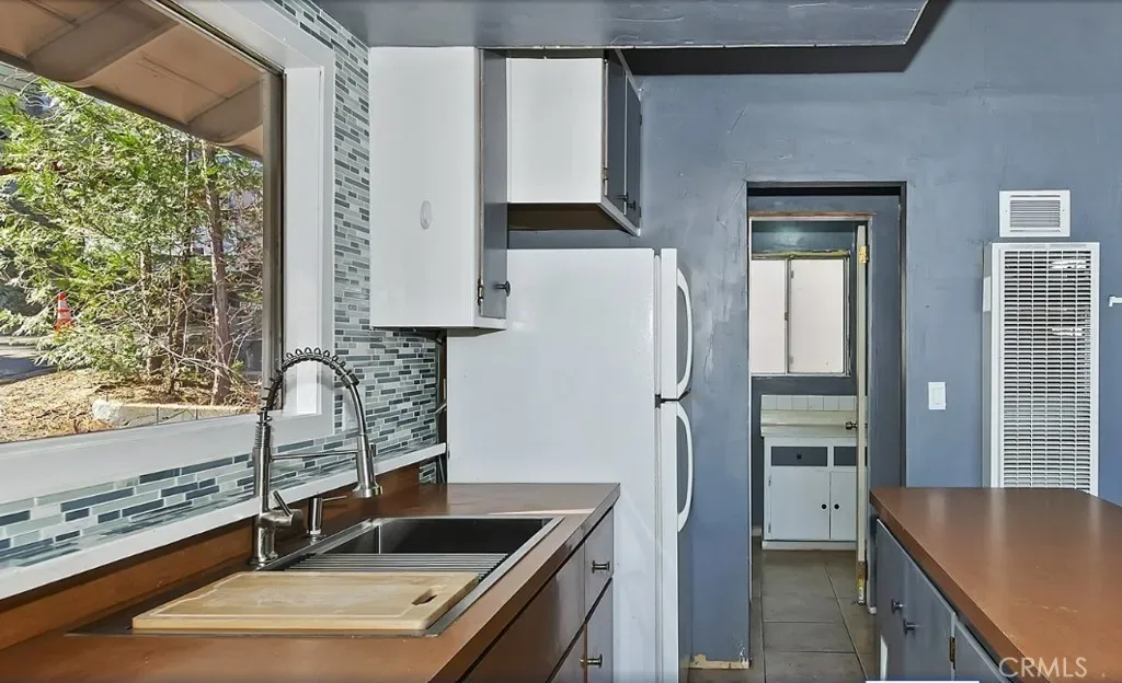 Courtesy of KELLER WILLIAMS LAKE ARROWHEAD. Disclaimer: All data relating to real estate for sale on this page comes from the Broker Reciprocity (BR) of the California Regional Multiple Listing Service. Detailed information about real estate listings held by brokerage firms other than James Outland include the name of the listing broker. Neither the listing company nor James Outland shall be responsible for any typographical errors, misinformation, misprints and shall be held totally harmless. The Broker providing this data believes it to be correct, but advises interested parties to confirm any item before relying on it in a purchase decision. Copyright 2026. California Regional Multiple Listing Service. All rights reserved. This inviting level-entry home offers two full bathrooms, conveniently located with one on each level. The main level features an open-concept living room and kitchen, perfect for everyday living and entertaining. The kitchen includes a breakfast bar for casual dining and an attractive overhang design, with a loft-style overlook above the stairway that can easily be used as an additional sleeping area, office, or creative space.