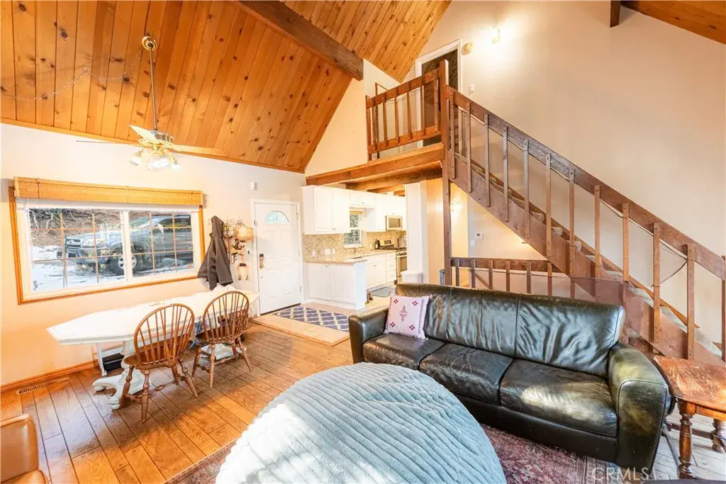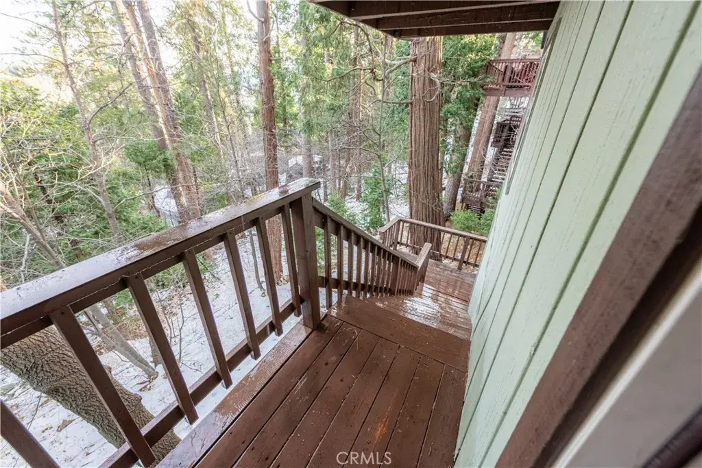LOCK in a RATE IN THE LOW 5% by using the seller’s closing cost credit to buy down your interest rate. A meaningful long-term savings opportunity. A complete turnkey and approved short-term rental perched amidst the towering pines of Crestline, this enchanting three-story mountain home offers four bedrooms and two baths across 1,544 square feet, creating the perfect blend of family living and alpine getaway. Vaulted, cathedral-style ceilings and striking triangular windows fill the open great room with natural light while framing sweeping forest views, an ideal backdrop for cozy evenings by the fireplace or gatherings that flow out to the spacious balcony for dining and fresh mountain air. The open-concept main level features a well-appointed kitchen with granite countertops and stainless steel appliances, seamlessly connected to the dining and living areas for effortless entertaining. Bedrooms are thoughtfully arranged, with a main-level room offering balcony access and a one-and-three-quarter bath, a charming loft bedroom on the third floor with a private balcony and built-in storage, and two additional bedrooms on the lower level alongside a full bath and laundry hookups. Outside, a tiered wooded backyard provides ample space for pets or play, while parking for 3–5 vehicles makes hosting guests a breeze. Just minutes from Lake Gregory and Lake Arrowhead, and under an hour from Big Bear, this inviting retreat offers easy access to hiking, skiing, and year-round outdoor adventures. Your perfect mountain sanctuary awaits.