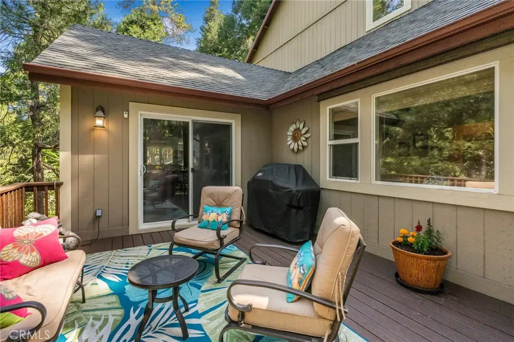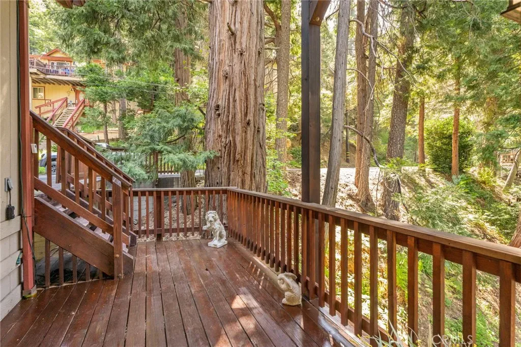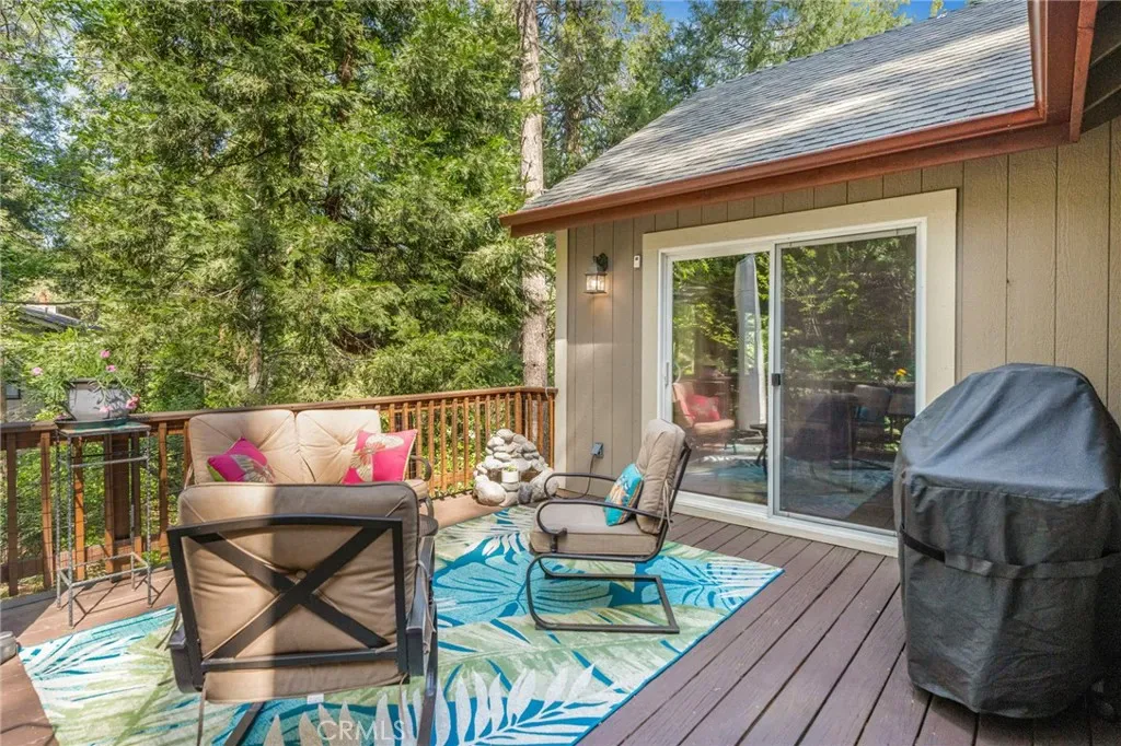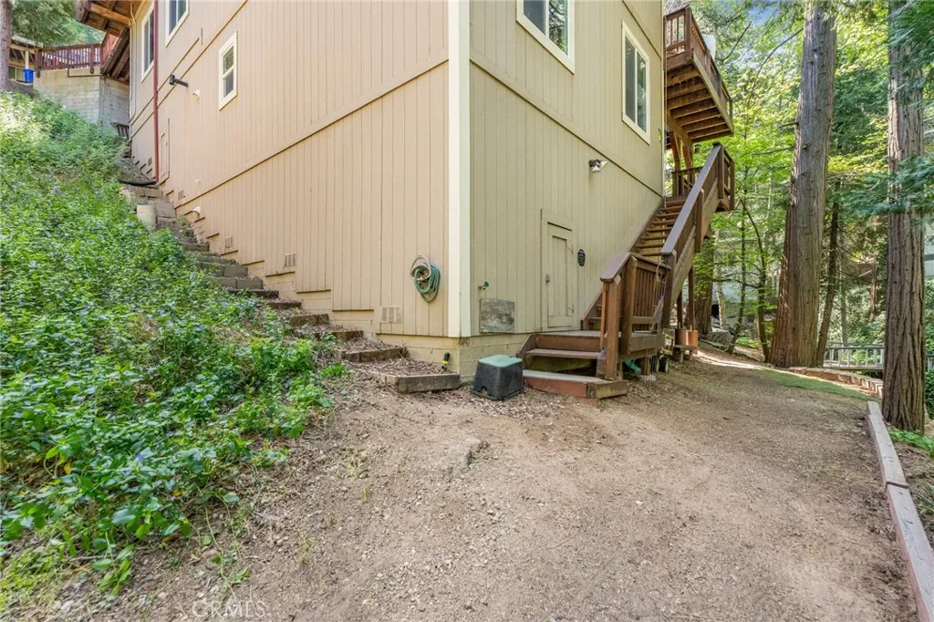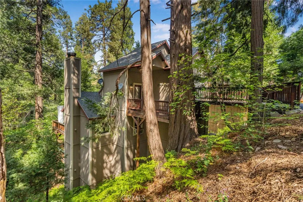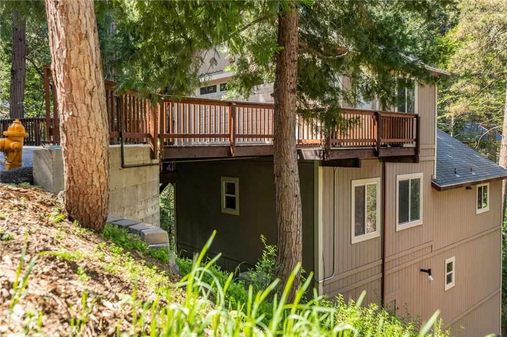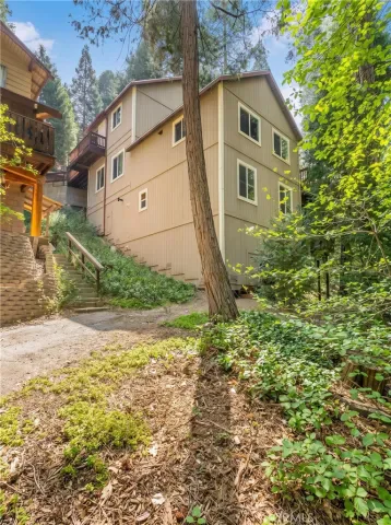 Beautiful Crestline Mountain Home Near Lake Gregory – Built in 2007 and offering 2,268 sq ft of living space, this well-maintained 3-bedroom, 2.5-bath home sits on a 7,713 sq ft lot surrounded by mature cedar, pine, and dogwood trees, creating a peaceful forest setting. This three-level home welcomes you through a main entry landing or the attached 2-car garage. The middle level serves as the heart of the home, featuring a living room with a stunning rock hearth fireplace and soaring ceiling. The gourmet kitchen is designed for both everyday living and entertaining, complete with granite countertops, an eat-at island, walk-in pantry, stainless steel appliances, and warm oak cabinetry. The adjacent dining area opens to a back deck, perfect for enjoying the cool mountain air and serene wooded surroundings. The primary suite is conveniently located on the main level and offers tall ceilings, built-in shelving, a walk-in closet, and an en-suite bathroom with dual sinks, a soaking tub, and a separate walk-in shower. The bottom lower-level features two additional bedrooms, a full bathroom, and a versatile bonus area ideal for an office, workout space, or library. The lower level includes a spacious family room with a second rock fireplace, laundry area, and access to both the back deck and yard, where you’ll find a seasonal creek enhancing the natural charm of the property. An additional approx. 800 sq ft of unfinished space behind the bonus area offers exciting potential to expand the living area. Additional highlights include a whole-house generator for year-round comfort and peace of mind during winter storms. Enjoy an unbeatable location with a walking trail just 150 yards to Lake Gregory, offering fishing, paddle boating, swimming, and hiking. Only minutes to Crestline Village for shopping, dining, bowling, and the local library, and approximately 30 miles to nearby ski resorts. Whether you’re seeking full-time mountain living or a weekend getaway, this beautifully cared-for home offers the perfect blend of comfort, space, and natural beauty.