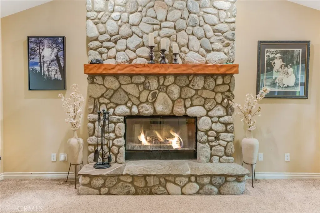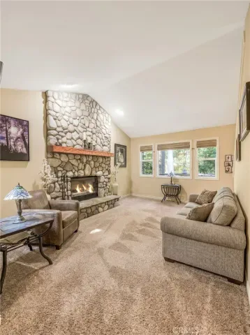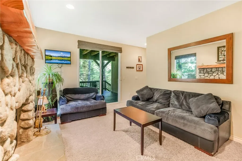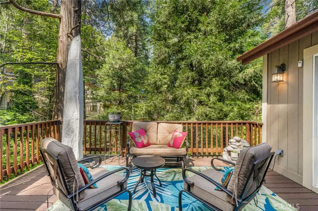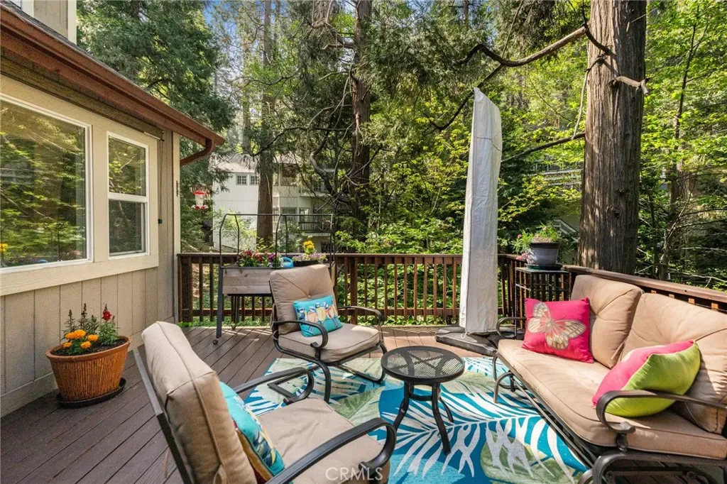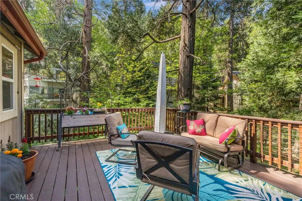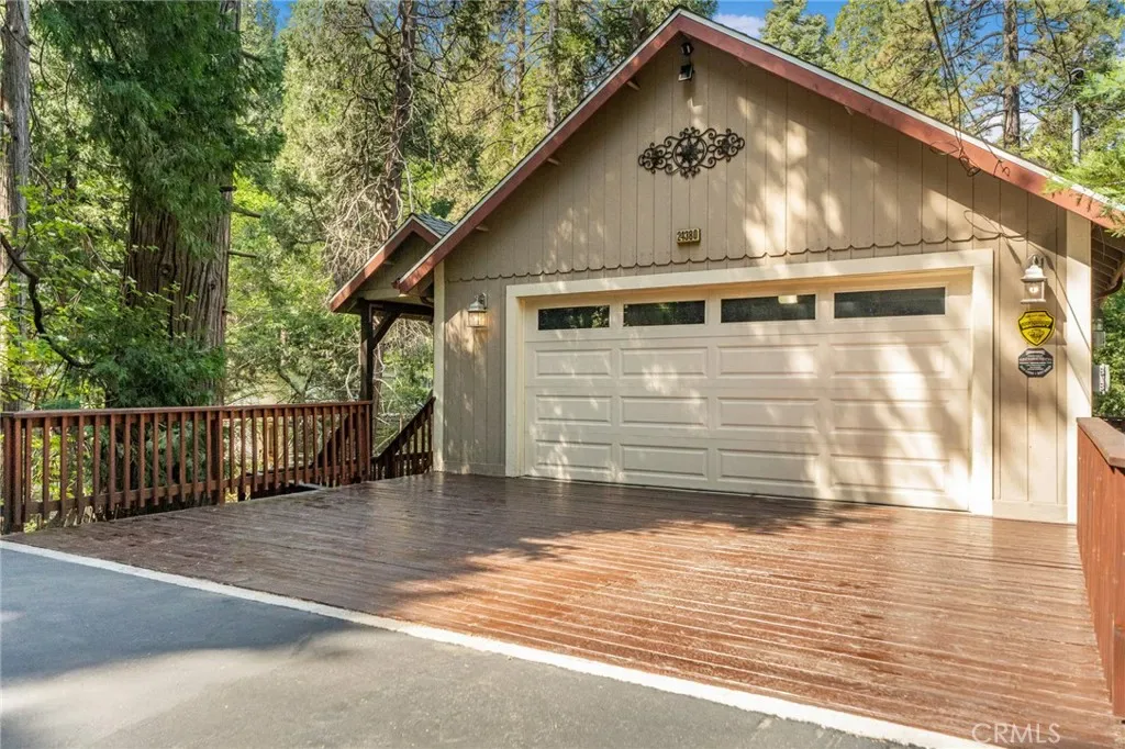 Beautiful Crestline Mountain Home Near Lake Gregory – Built in 2007 and offering 2,268 sq ft of living space, this well-maintained 3-bedroom, 2.5-bath home sits on a 7,713 sq ft lot surrounded by mature cedar, pine, and dogwood trees, creating a peaceful forest setting. This three-level home welcomes you through a main entry landing or the attached 2-car garage. The middle level serves as the heart of the home, featuring a living room with a stunning rock hearth fireplace and soaring ceiling. The gourmet kitchen is designed for both everyday living and entertaining, complete with granite countertops, an eat-at island, walk-in pantry, stainless steel appliances, and warm oak cabinetry. The adjacent dining area opens to a back deck, perfect for enjoying the cool mountain air and serene wooded surroundings. The primary suite is conveniently located on the main level and offers tall ceilings, built-in shelving, a walk-in closet, and an en-suite bathroom with dual sinks, a soaking tub, and a separate walk-in shower. The bottom lower-level features two additional bedrooms, a full bathroom, and a versatile bonus area ideal for an office, workout space, or library. The lower level includes a spacious family room with a second rock fireplace, laundry area, and access to both the back deck and yard, where you’ll find a seasonal creek enhancing the natural charm of the property. An additional approx. 800 sq ft of unfinished space behind the bonus area offers exciting potential to expand the living area. Additional highlights include a whole-house generator for year-round comfort and peace of mind during winter storms. Enjoy an unbeatable location with a walking trail just 150 yards to Lake Gregory, offering fishing, paddle boating, swimming, and hiking. Only minutes to Crestline Village for shopping, dining, bowling, and the local library, and approximately 30 miles to nearby ski resorts. Whether you’re seeking full-time mountain living or a weekend getaway, this beautifully cared-for home offers the perfect blend of comfort, space, and natural beauty.