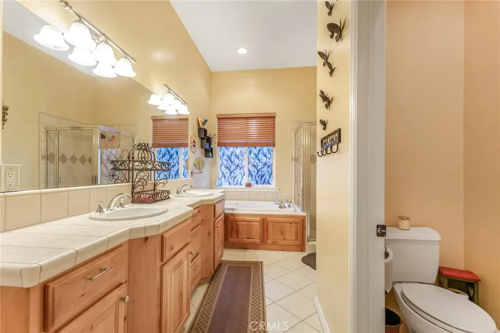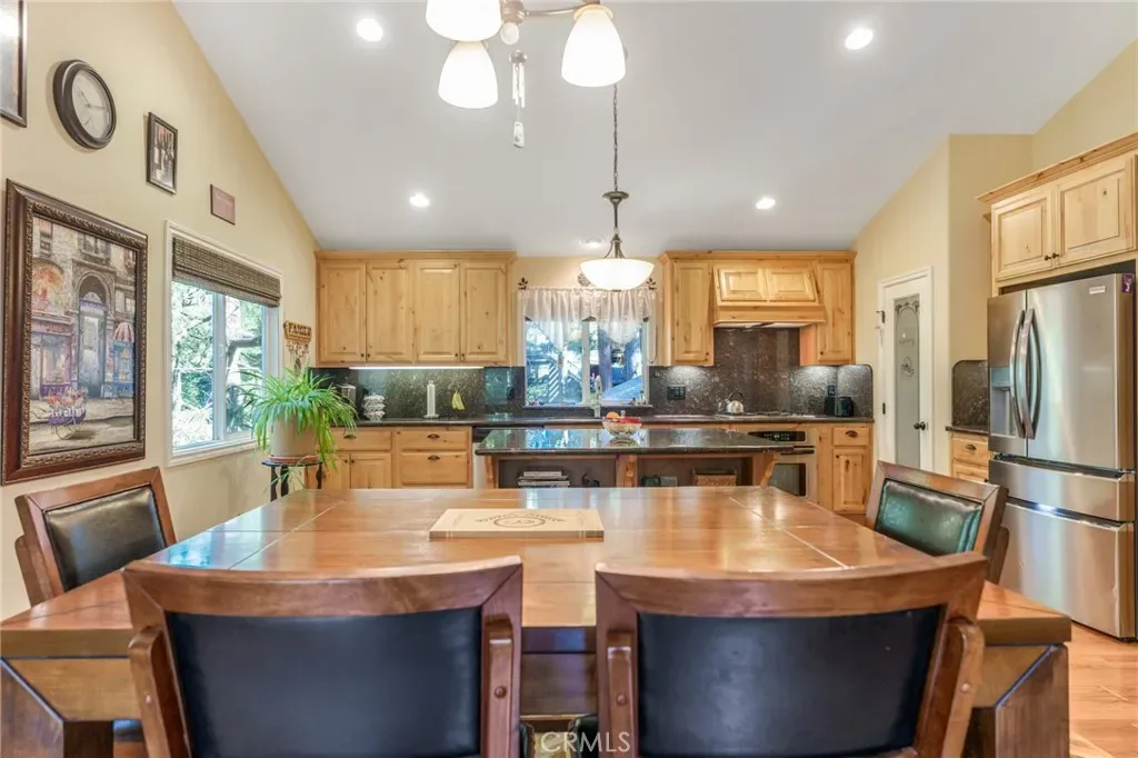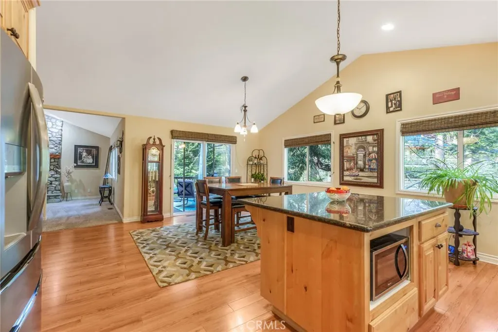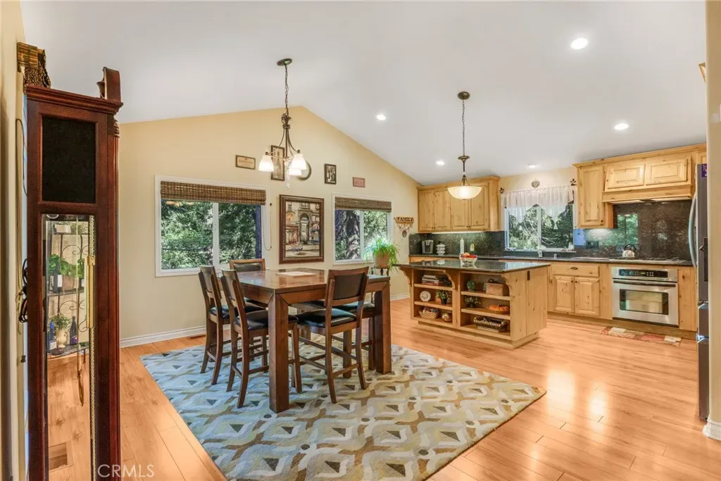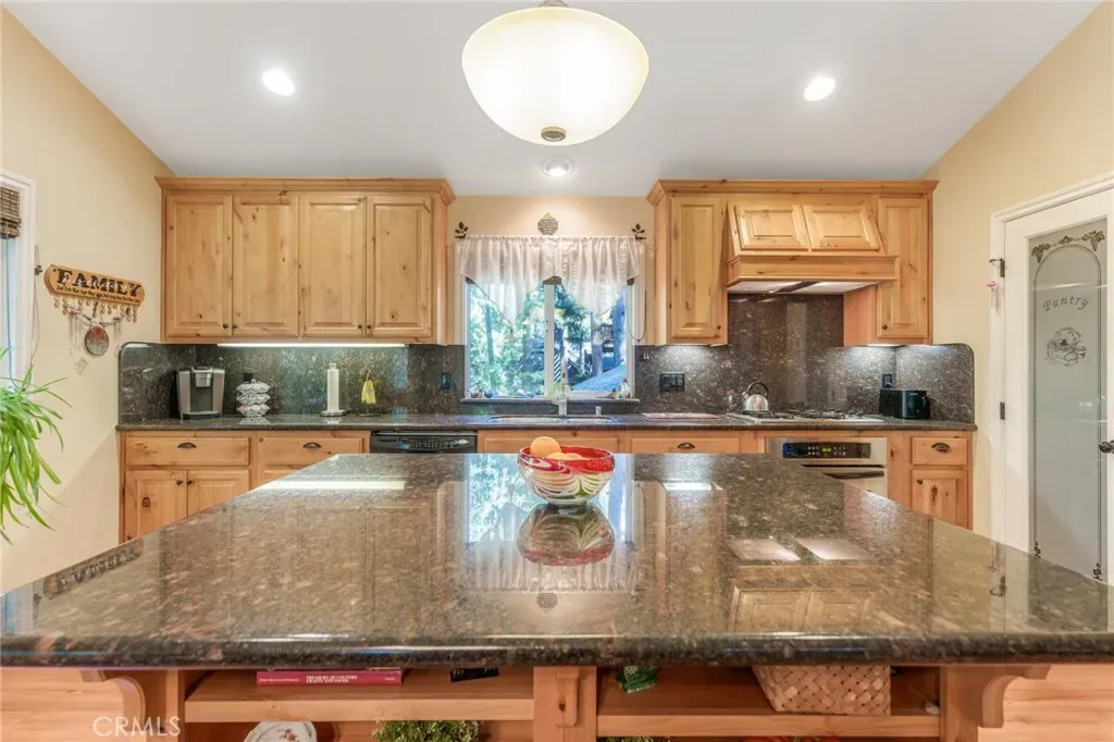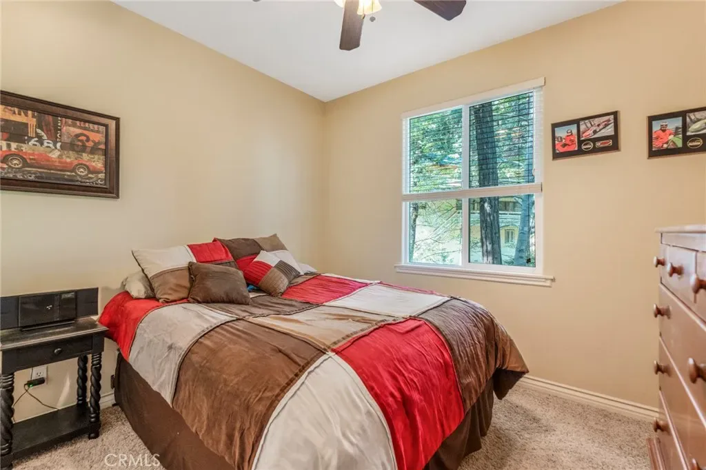 Beautiful Crestline Mountain Home Near Lake Gregory – Built in 2007 and offering 2,268 sq ft of living space, this well-maintained 3-bedroom, 2.5-bath home sits on a 7,713 sq ft lot surrounded by mature cedar, pine, and dogwood trees, creating a peaceful forest setting. This three-level home welcomes you through a main entry landing or the attached 2-car garage. The middle level serves as the heart of the home, featuring a living room with a stunning rock hearth fireplace and soaring ceiling. The gourmet kitchen is designed for both everyday living and entertaining, complete with granite countertops, an eat-at island, walk-in pantry, stainless steel appliances, and warm oak cabinetry. The adjacent dining area opens to a back deck, perfect for enjoying the cool mountain air and serene wooded surroundings. The primary suite is conveniently located on the main level and offers tall ceilings, built-in shelving, a walk-in closet, and an en-suite bathroom with dual sinks, a soaking tub, and a separate walk-in shower. The bottom lower-level features two additional bedrooms, a full bathroom, and a versatile bonus area ideal for an office, workout space, or library. The lower level includes a spacious family room with a second rock fireplace, laundry area, and access to both the back deck and yard, where you’ll find a seasonal creek enhancing the natural charm of the property. An additional approx. 800 sq ft of unfinished space behind the bonus area offers exciting potential to expand the living area. Additional highlights include a whole-house generator for year-round comfort and peace of mind during winter storms. Enjoy an unbeatable location with a walking trail just 150 yards to Lake Gregory, offering fishing, paddle boating, swimming, and hiking. Only minutes to Crestline Village for shopping, dining, bowling, and the local library, and approximately 30 miles to nearby ski resorts. Whether you’re seeking full-time mountain living or a weekend getaway, this beautifully cared-for home offers the perfect blend of comfort, space, and natural beauty.