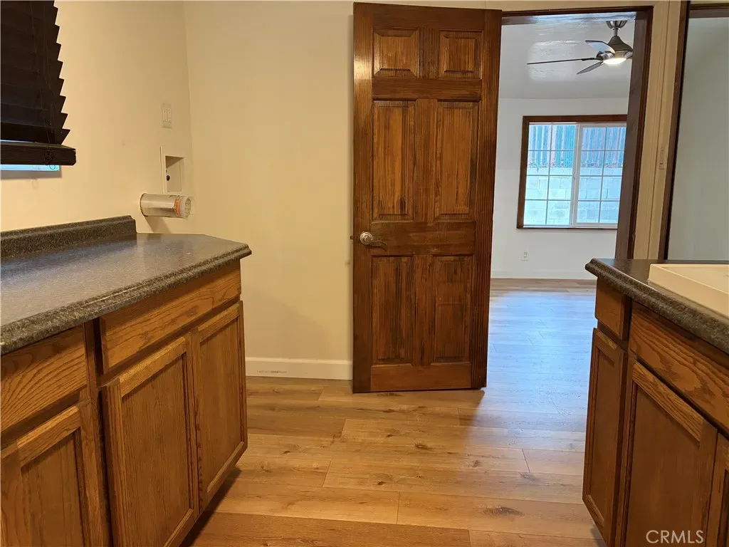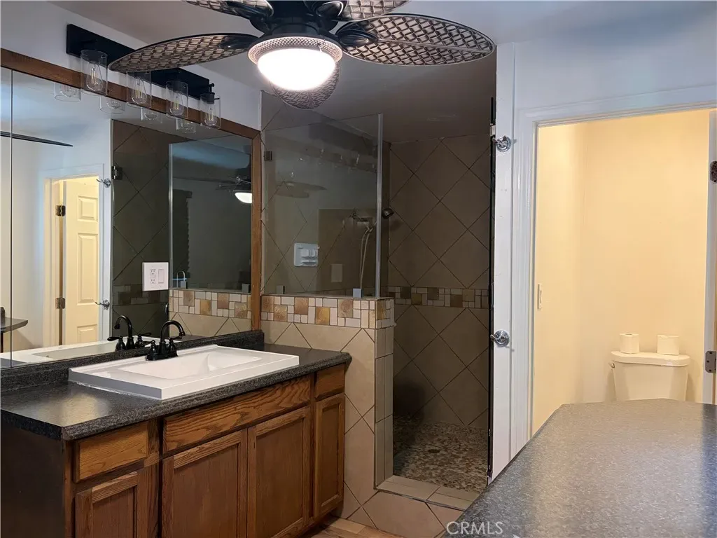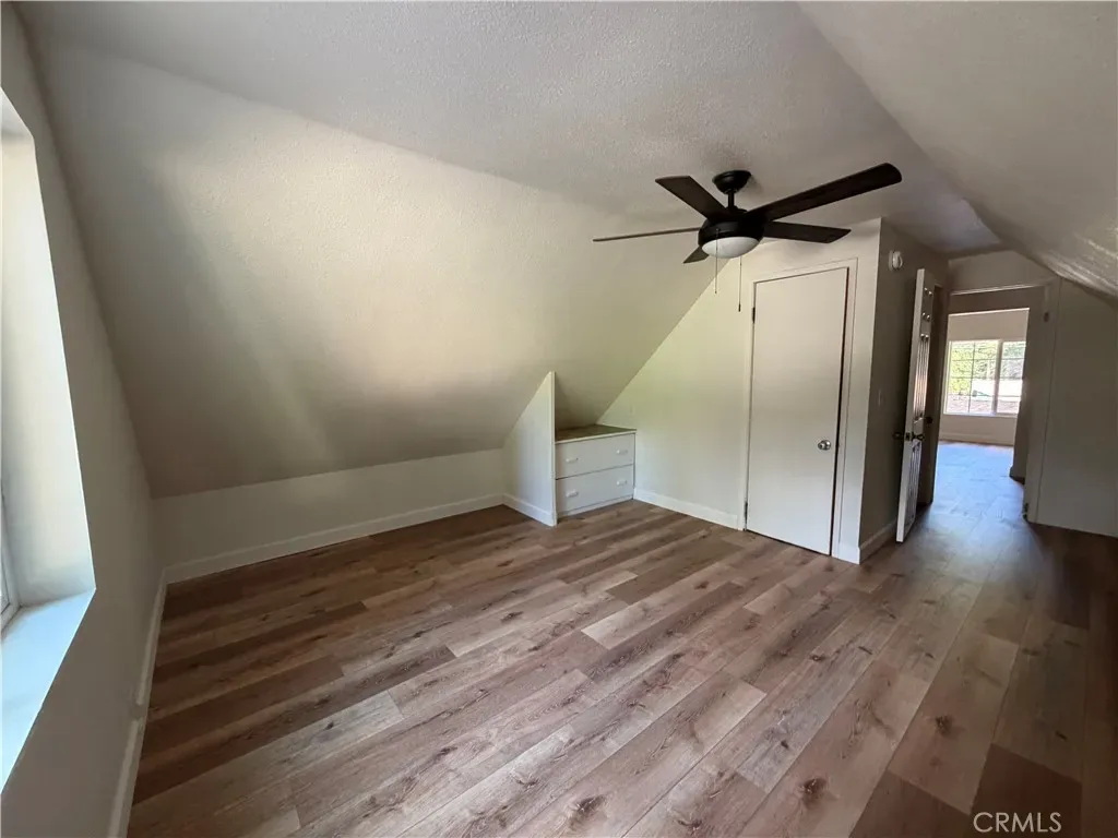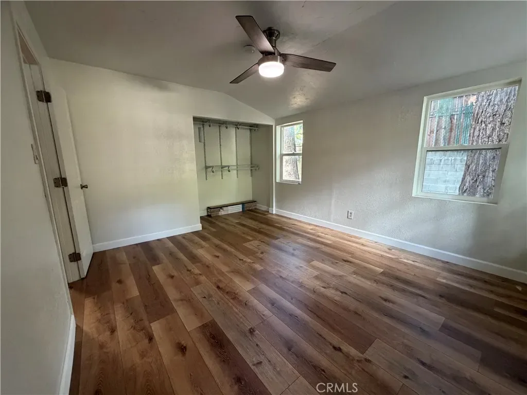 5 BR/2 BA. Highly desired mountain home with rare level entry with no stairs to climb to the front door. Only 2 bedrooms are upstairs in the loft area. The level entry room includes the main largest bedroom, large bathroom with the stacked washer dryer unit hook up, dining room, kitchen and living room. The next level down includes 3 steps downward to two more bedrooms with another full bathroom. This house might be bigger than 1500 sq ft but that would need to be verified by the buyer. This home has recently been renovated with a fresh coat of paint on the outside and the inside, new wood plank laminate flooring throughout the whole house, new fixtures through the whole house, new kitchen cabinets, dishwasher, stove and microwave. Very generous concrete paved pathways flow all around the house w/ample parking space inside the gate & on the street. A covered breezeway leads to the attached workshop. A detached Storage room has a brand new roof and not new electricity. Grab this one fast, it won’t last long at this price.