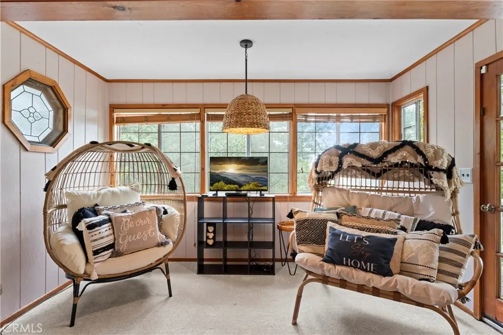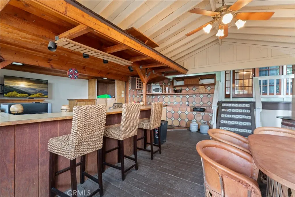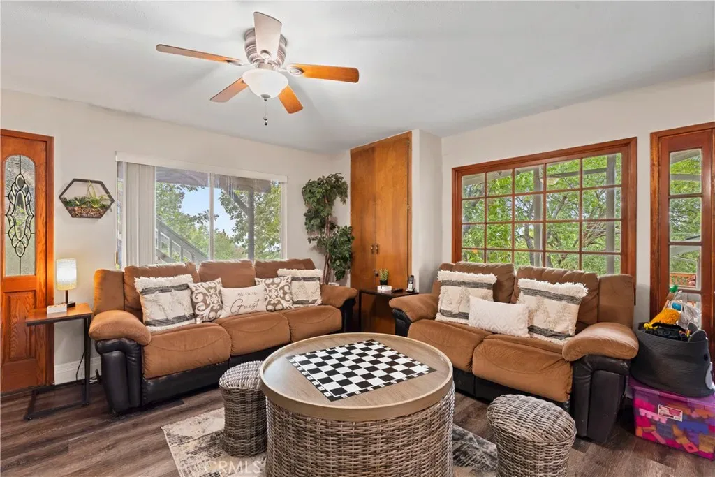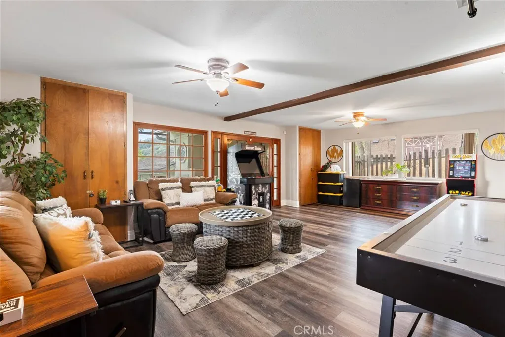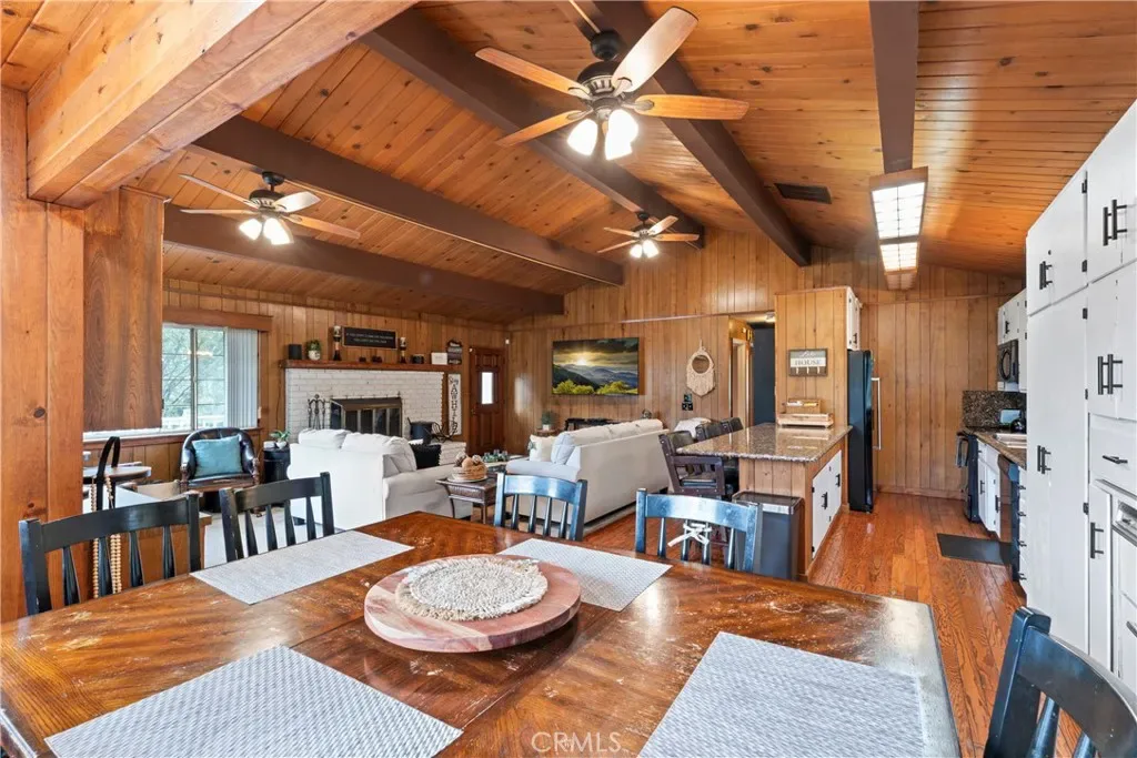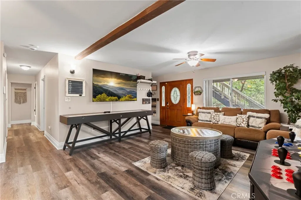 Your Mountain Retreat Awaits. Dreaming of a peaceful mountain getaway with room for everyone? This inviting home blends warmth, comfort, and breathtaking views. Step inside and unwind by the cozy brick fireplace, the perfect spot for winter evenings after a day outdoors. The main level offers a spacious game room, three bedrooms, one and a half baths, and brand new laminate flooring – ideal for family gatherings or weekend guests. Upstairs, light floods into the expansive living and dining area, designed with sweeping vistas to frame your every day. The master suite opens onto a private deck, where you can sip your morning coffee while soaking in the mountain air. A guest room and additional full bath add even more flexibility for family and friends. The heart of the home, the kitchen, features freshly painted cabinets, granite countertops, and a generously sized eating island, perfect for both casual meals and entertaining. Recent upgrades include a new deck, roof and paint. Outdoor living truly shines here with a large entertainment area complete with an outdoor kitchen, bar, and multiple balconies – your own private setting for unforgettable summer evenings under the stars. Centrally located near Lake Gregory, Lake Arrowhead, and popular mountain attractions, this home delivers the serene mountain lifestyle you’ve dreamed of, with convenience never far away.