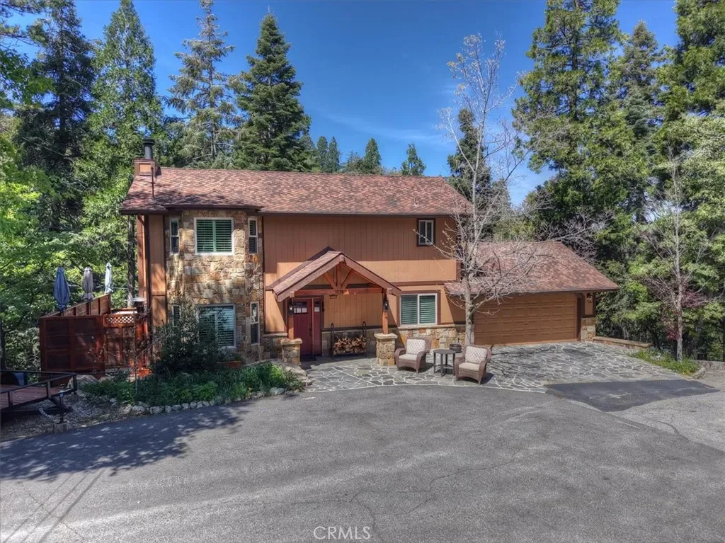 Gorgeous San Moritz area cul-de-sac home featuring ideal level entry plus attached oversized garage with direct access! Pride of ownership with meticulous maintenance inside and out, lots of recent upgrades/updates and lovely private feeling decks & flagstone patios to enjoy the views! Home is nicely perched near the end of the cul-de-sac on a large street to street lot to ensure an extra sense of privacy. Walkways, meandering trails and stairs throughout the property add a lush woodsy nicely landscaped setting to enjoy. Lots of parking in the level concrete driveway plus additional parking in the garage. Garage features custom flooring, cabinets, workshop with utility sink and exterior access. Spacious kitchen with newer stainless appliances. Luxury vinyl plank flooring throughout the main level. Cozy rock fireplace in the living room with large sliding glass door leading out to the private feeling wrap around deck. Large primary suite with private deck, full en suite bathroom and spacious walk in closet. Extras include whole house natural gas generator, A/C, tankless hot water heater, large covered flagstone covered entry area, solid stone facing on the front of the home and more. Don’t miss this amazing home, make your offer today!