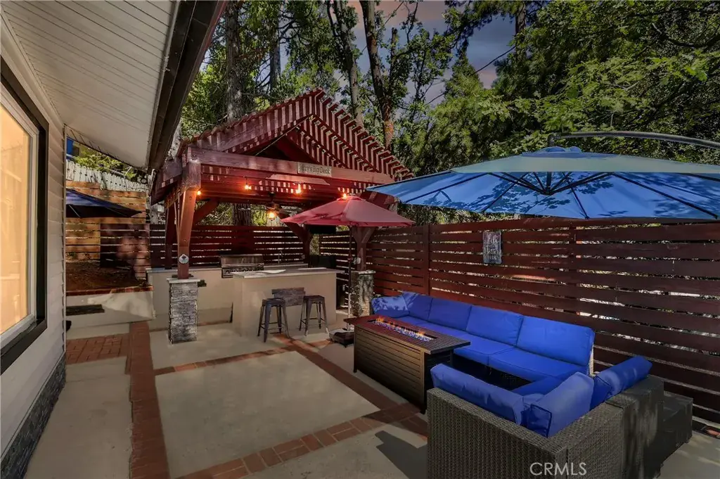 Spacious tastefully remodeled San Moritz area home on a flat fenced lot with a prime location just around the corner from lovely Lake Gregory! This stunning split level home has it all, an inviting open floorplan with vaulted ceilings and dramatic rock fireplace featuring a cozy wood burning stove. Large primary suite with beautiful en suite luxury bathroom. Two large bedrooms upstairs with remodeled full bath. Main level has a very large bedroom currently in use as a combination office and den, full remodeled bath, laundry room/area, livingroom/kichen,dining plus a large bonus storage/sun room. Home is ideal for entertaining with a lovely outdoor patio space with covered state of the art BBQ/Bar with plenty of seating. There is also a fenced yard with artificial grass and picnic bench seating area that is pet and child friendly. Huge number of recent updates/upgrades including new oversized high efficiency whole house A/C, whole house natural gas Generator, Dual Pane Windows, Vinyl Siding, Newer roof, recent full interior remodel, New Secure Gated Front Entry and much more! Best of all, this home is ideally located just around the corner from Lake Gregory, Goodwins Supermarket, restaurants, entertainment, miles of trails and more. There are even Peek-a-boo Lakeviews from one of the bedrooms and a couple areas on the property. Home has previously been used as a successful/profitable AirBnB/Vacation Rental and could be again! Don’t miss this amazing opportunity…make your offer today!