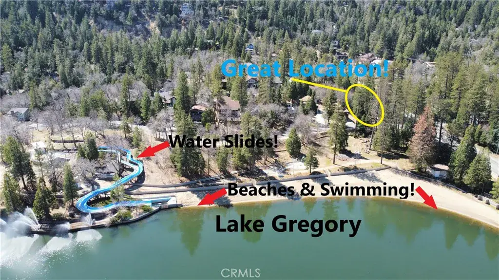 Lovely lakeside corner lot with serene lakeviews! Located directly across from beautiful Lake Gregory beaches with swimming, boating, water slides and hiking trails just right across the street. Just a block or so to downtown Crestline shops, dining and entertainment. Approx. 7500 SQ FT of gentle land with beautiful pines, cedars and oaks all around. Great street frontage on both San Moritz Drive and Lake Gregory Drive. Ideal for primary residence, 2nd home or vacation rental. All utilities (water,sewer,gas,electric,phone,high speed internet,cable) are all conveniently located at or near the street. Design your mountain dream home and come enjoy the mountain lifestyle. Address is estimated only for location purposes only and has not been assigned. Survey & Topography have been completed and some property corners are still visible. Don’t miss out on this unique opportunity, make your offer today!