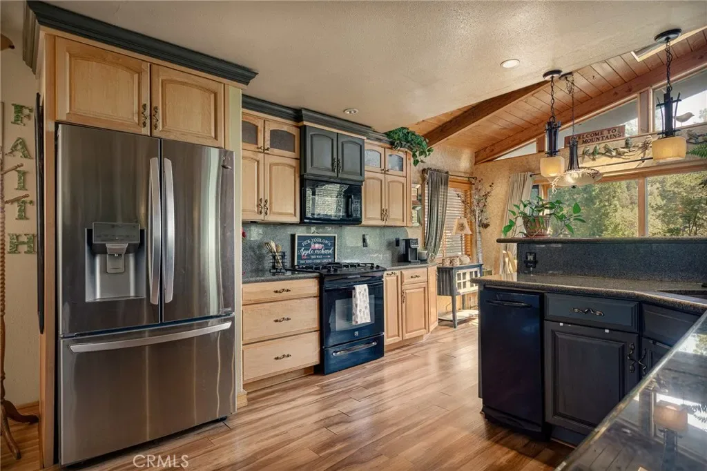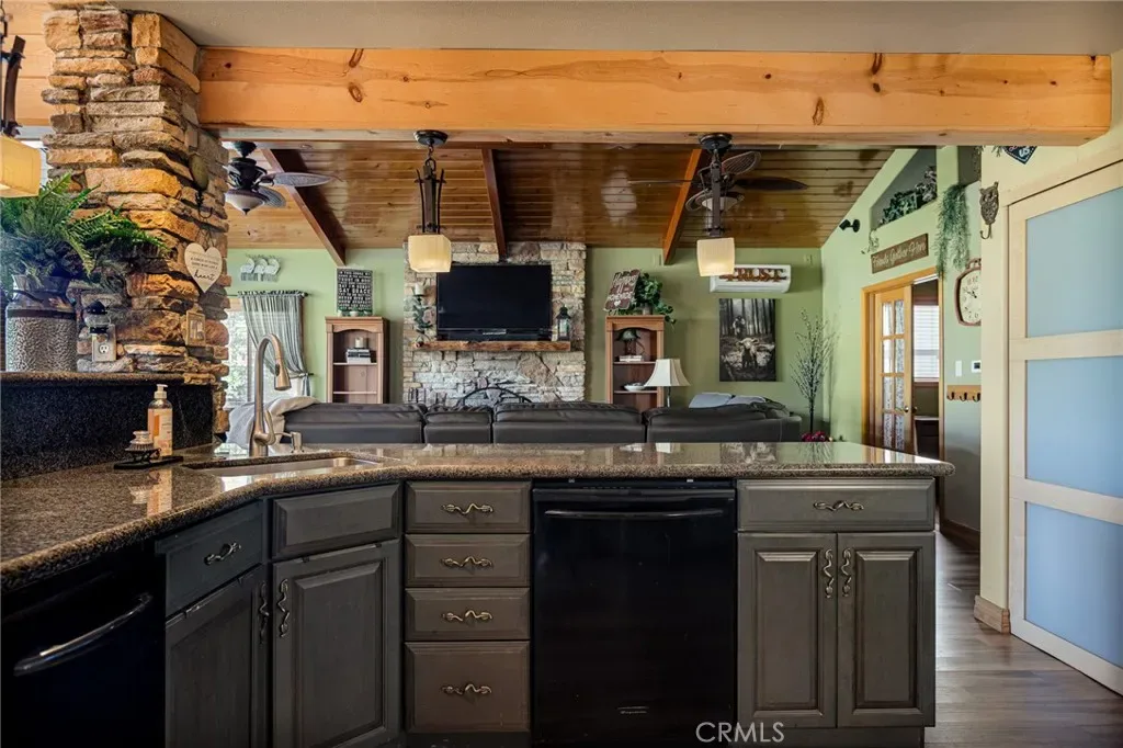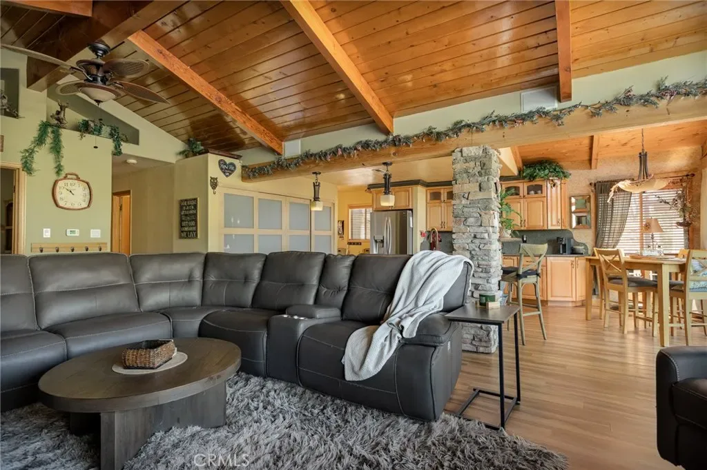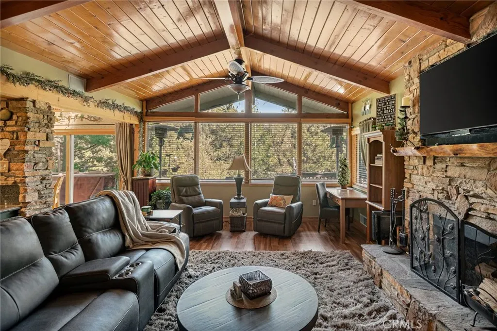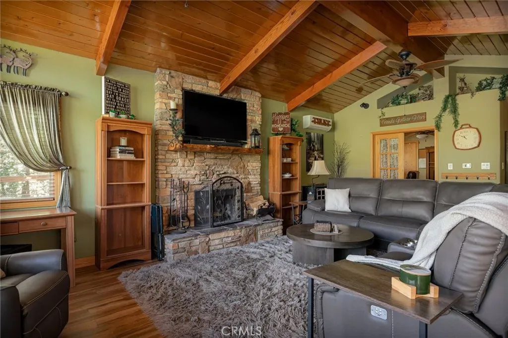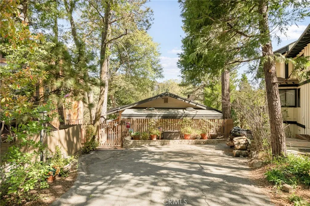 Updated Lakeside San Moritz home on all one level living. If you have been searching for that “almost lake front home” then this just might be the one. Located directly across from Lake Gregory you will find this well cared for home that allows you to bask in the Lake Life! Located so that there is dual access, offering ample parking and enough room to fit your RV. Upon entering you are near level entry offering handicapped accessibility if needed. Once inside you will find a wall of windows and vaulted ceilings that allows the natural light to flood in. You will enjoy sunrises, lake views, and the current owners have even enjoyed the 4th of July Fireworks from the very large composite entertaining deck. You will find multiple checked boxes including, granite kitchen counter tops, large pantry, stone fireplace, a large walk in cedar lined closet in the primary bedroom, Solar panels which run the mini split AC, a generator hook up, multiple storage sheds, a large build up with loads of storage space, all while it comes mostly furnished. If you are a walker, then you will enjoy the extreme convenience of the Lake Gregory lake trail right across the street, or a walk into town to where you can shop and dine. You are also right above the main beach, parking lot and water slides. You can enjoy all the action from your front deck while taking in the forested setting. Don’t let one of a kind slip away!